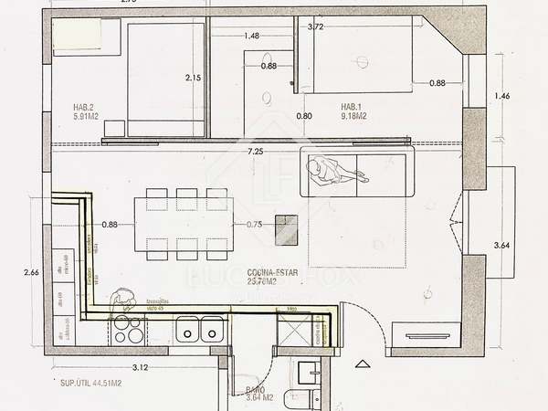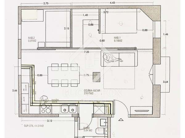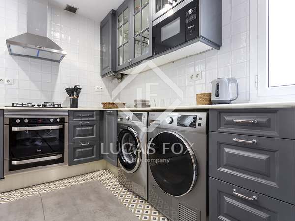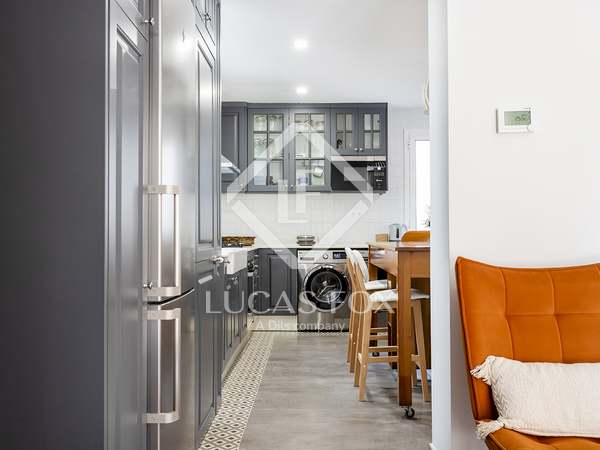 Hoewel niet volledig gemeubileerd, is de woning gedeeltelijk uitgerust en ingericht, zoals te zien is op de foto's. De keuken valt op door zijn ruimtelijkheid en functionaliteit en is van alle gemakken voorzien, ideaal voor dagelijks gebruik. Het beschikt tevens over centrale airconditioning (airco en verwarming), een berging en een of twee parkeerplaatsen.
