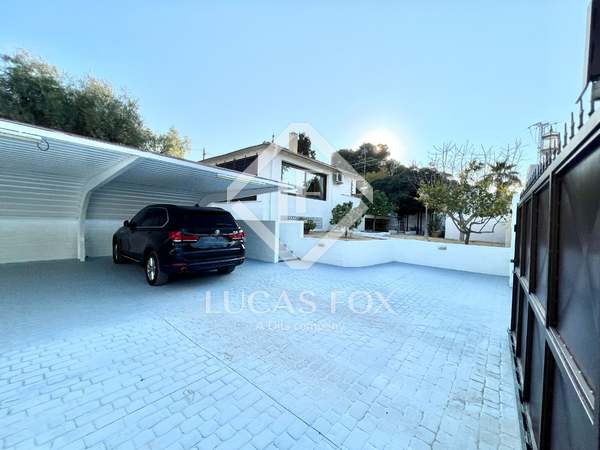 Lucas Fox presenteert een luxe villa te huur met een totale oppervlakte van 486 m², 240 m² interieur en 246 m² terrassen. Met drie verdiepingen en grote ramen vult natuurlijk licht de ruimtes. De eerste verdieping heeft een garage voor twee auto's en een ontspanningsruimte met panoramisch uitzicht op de zee en de bergen.