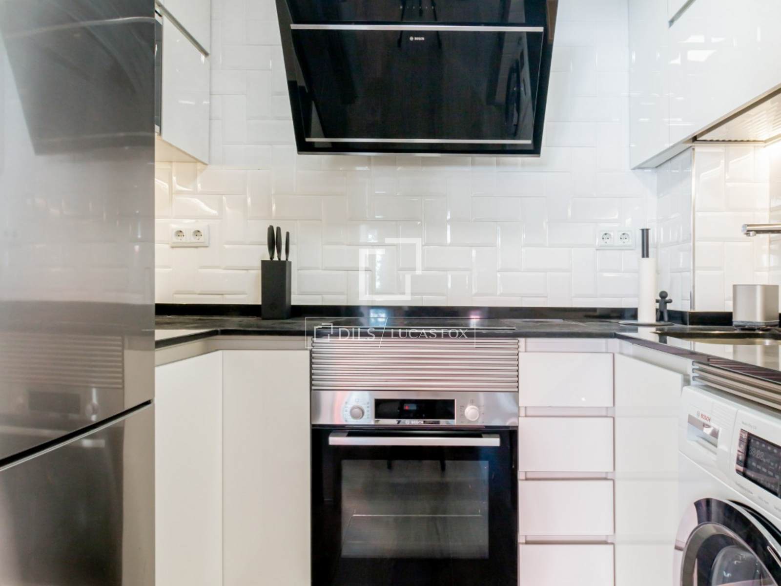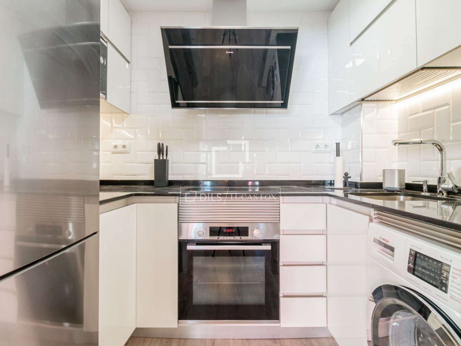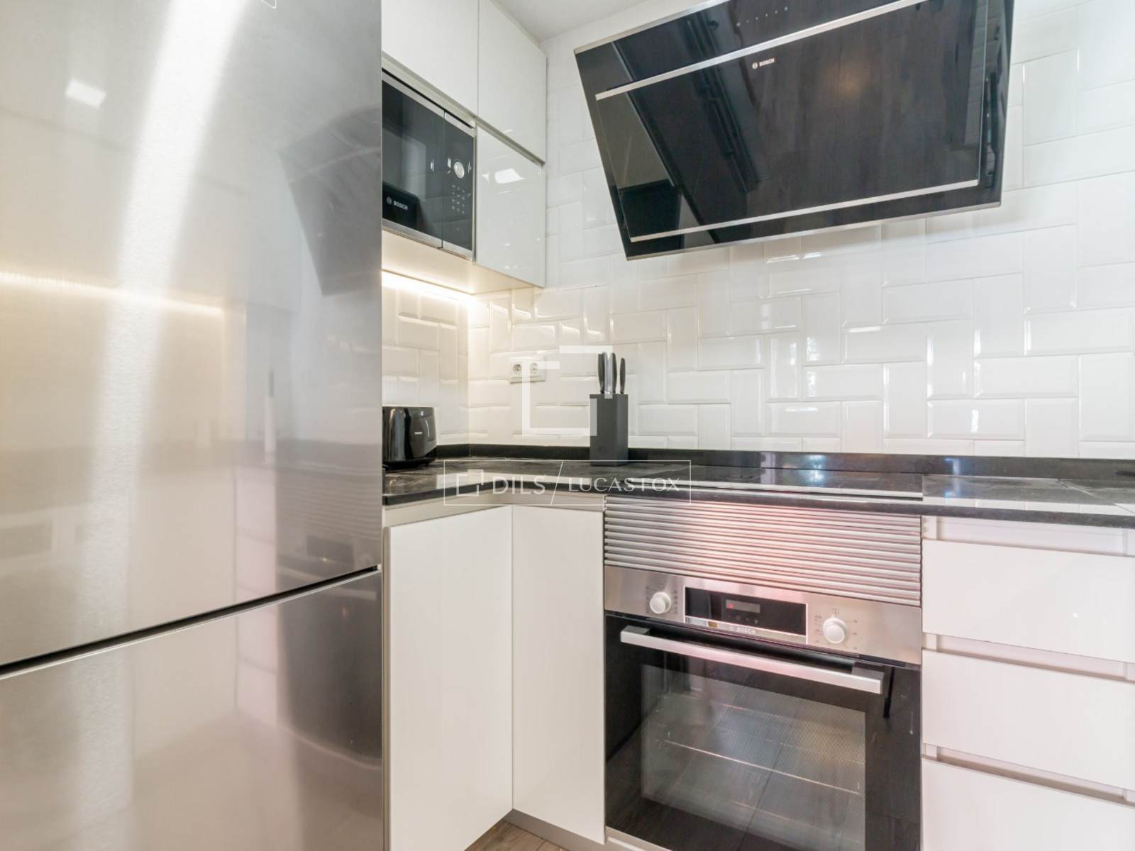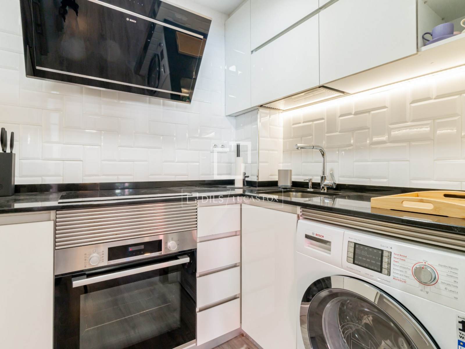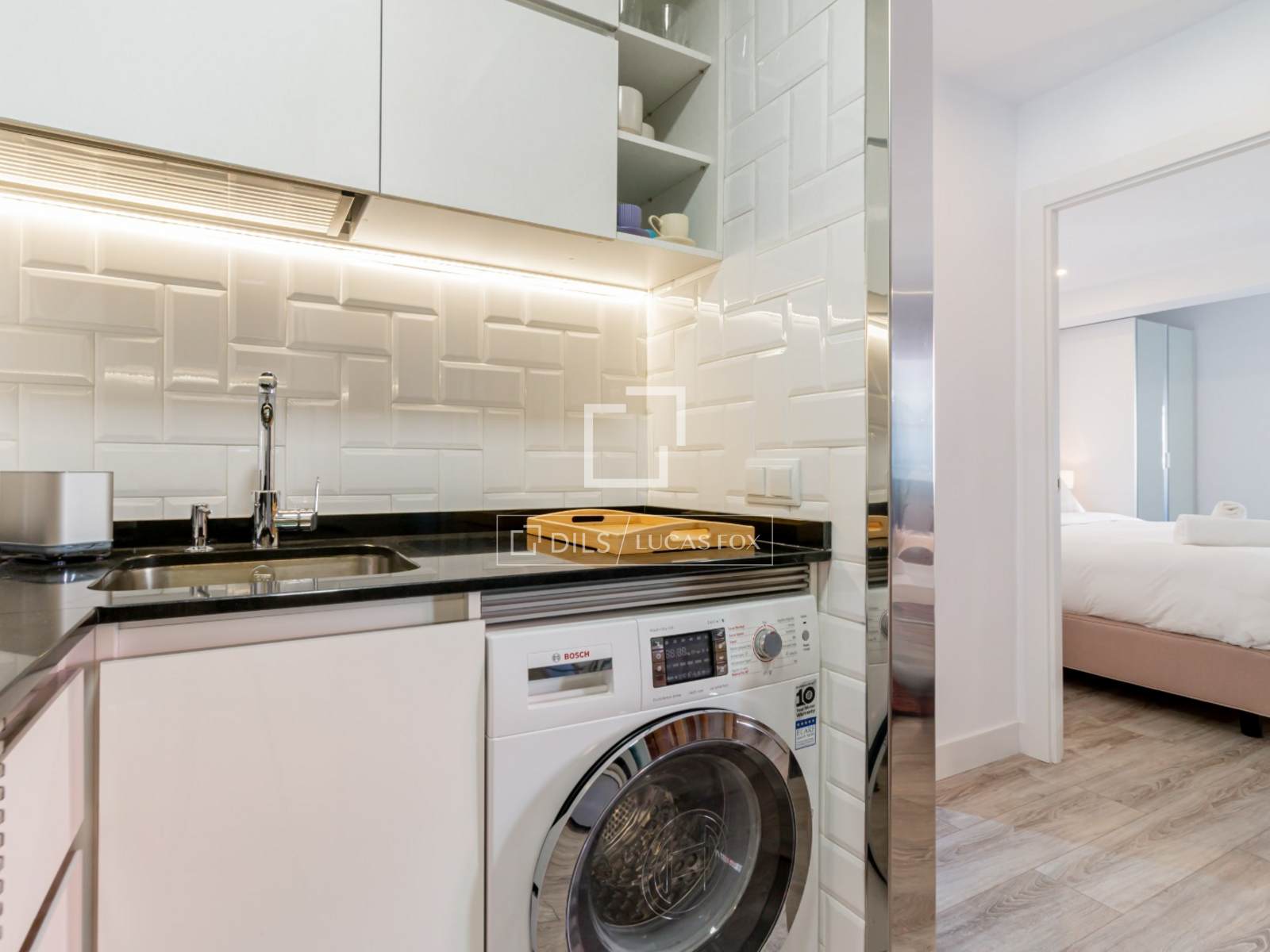Dit volledig uitgeruste en met hoogwaardige materialen ingerichte appartement combineert elegantie en functionaliteit. De keuken is van alle gemakken voorzien. Bovendien bieden de inbouwkasten extra opbergruimte om alles netjes op te bergen.