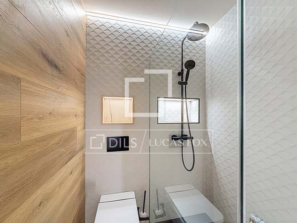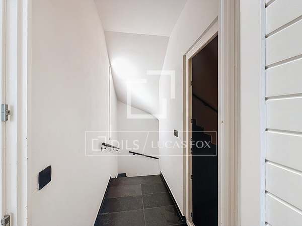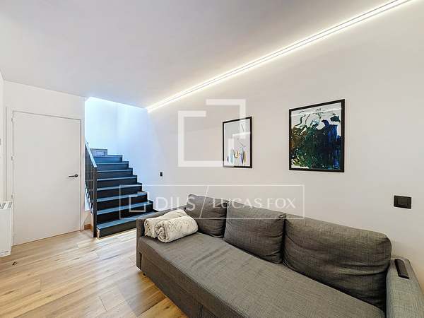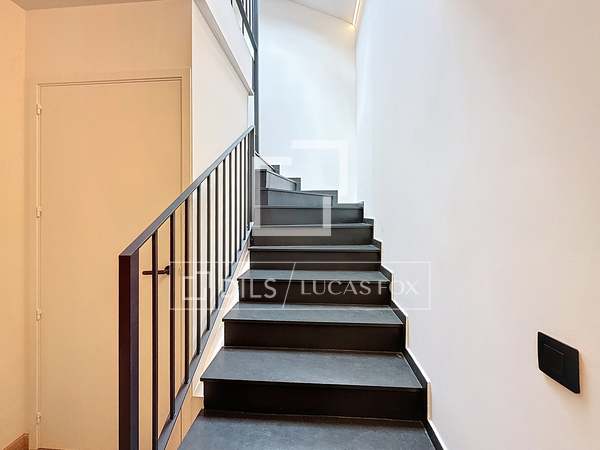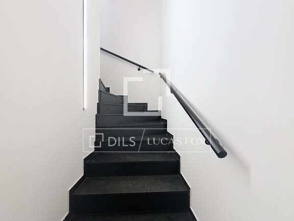 Op de eerste verdieping bevindt zich de woonkamer, eetkamer en keuken, allemaal in een open ruimte met duidelijk afgebakende zones. Aan de ene kant bevindt zich een ruime microcementkeuken met toegang tot de tuin en een ontbijthoek. De tuin kan worden omgetoverd tot een relaxruimte, perfect om te ontspannen en te genieten van de omgeving. Aan de andere kant bevindt zich de woon-/eetkamer met toegang tot een groot terras met grote ramen die de ruimte overspoelen met natuurlijk licht en een fantastisch uitzicht bieden. Het terras biedt voldoende ruimte voor een tafel en stoelen, ideaal om in de zomer te dineren. Een gastenbadkamer completeert deze verdieping.