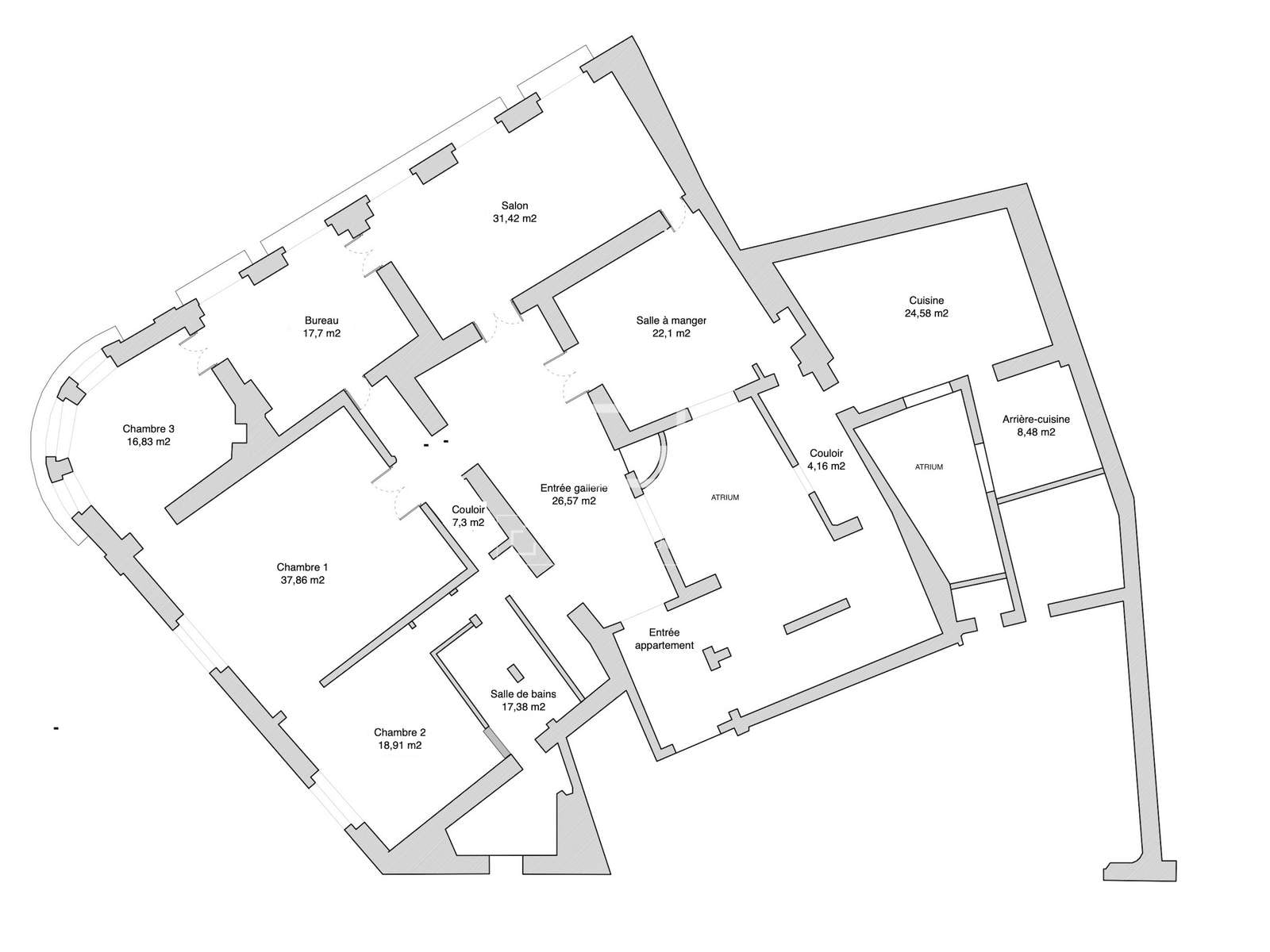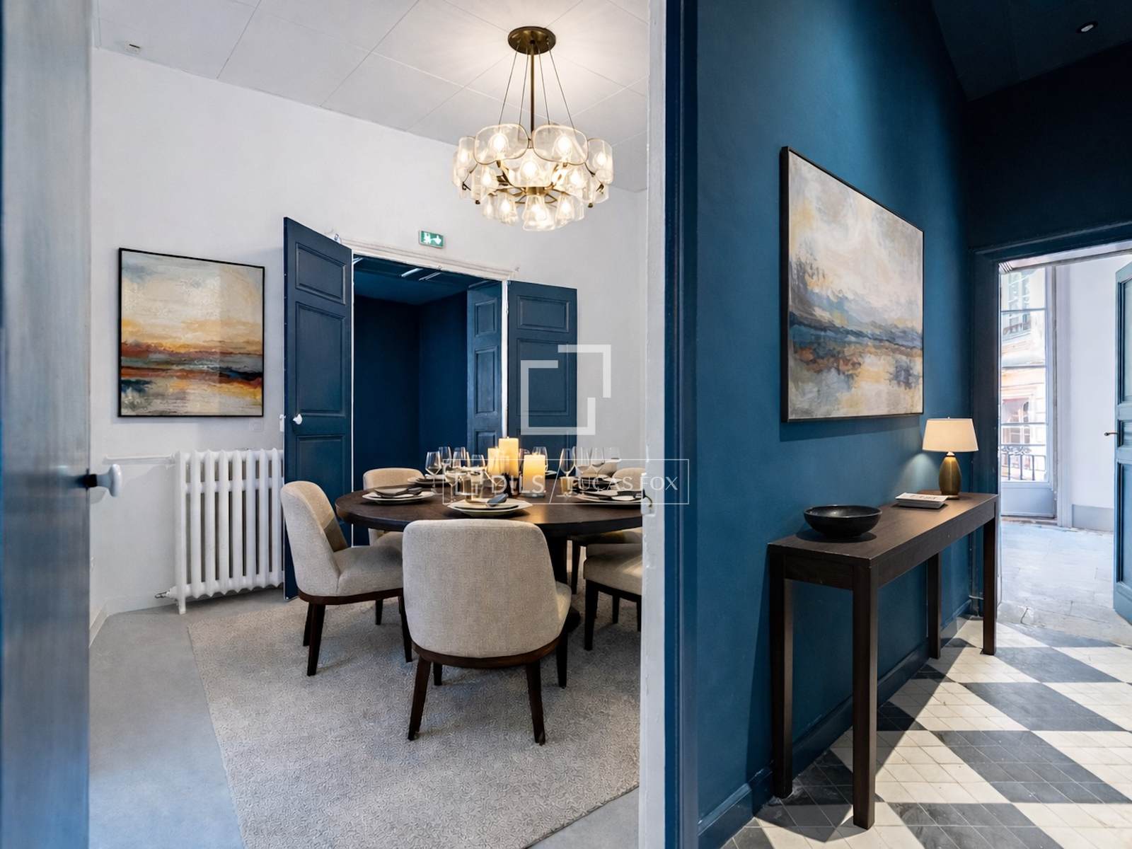Het appartement bestaat uit een ruime, stervormige entreehal die toegang geeft tot de twee woongedeelten. Aan de woonzijde bevindt zich de grote woonkamer met drie ramen en balkons die uitkijken op de Place de la Canourgue. De woonkeuken is apart gelegen en wordt aangevuld door een grote bijkeuken/wasruimte. Tussen de keuken en de woonkamer bevindt zich de eetkamer. Het appartement is goed ontworpen en biedt een comfortabele woonomgeving. Virtuele plattegronden geven u de mogelijkheid de ruimtes te visualiseren. Een andere kamer heeft twee ramen, eveneens met uitzicht op de Canourgue; deze kan dienen als bibliotheek, tv-kamer of kantoor.