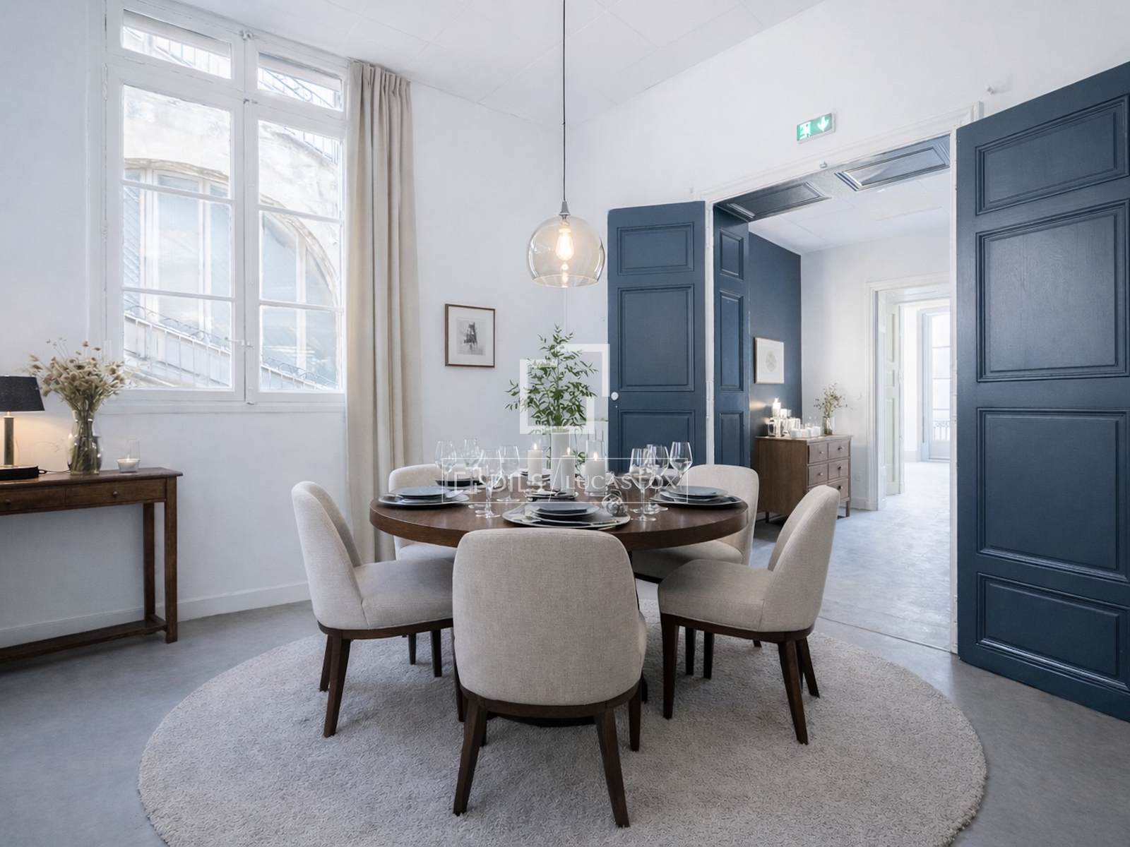 Dit uitzonderlijke appartement profiteert van grote ruimtes en hoge plafonds, kamerhoge ramen, sierlijsten, marmer en Montpellier-staven, evenals een centraal airconditioningsysteem.