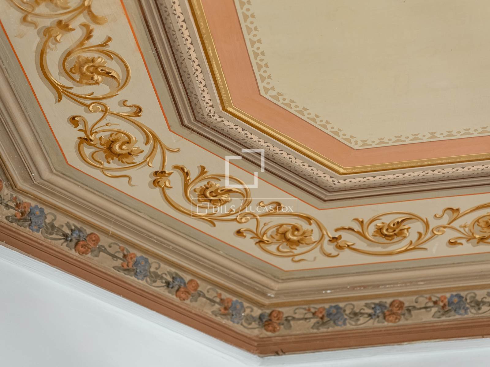 Op de eerste verdieping van een opmerkelijk herenhuis bevindt zich een volledig gerenoveerd appartement van 230 m², bestaande uit 8 kamers, een bijkeuken en een eigen, afgesloten garage aan de voet van het gebouw, groot genoeg voor een auto. Het appartement is uitermate geschikt als kantoorruimte.