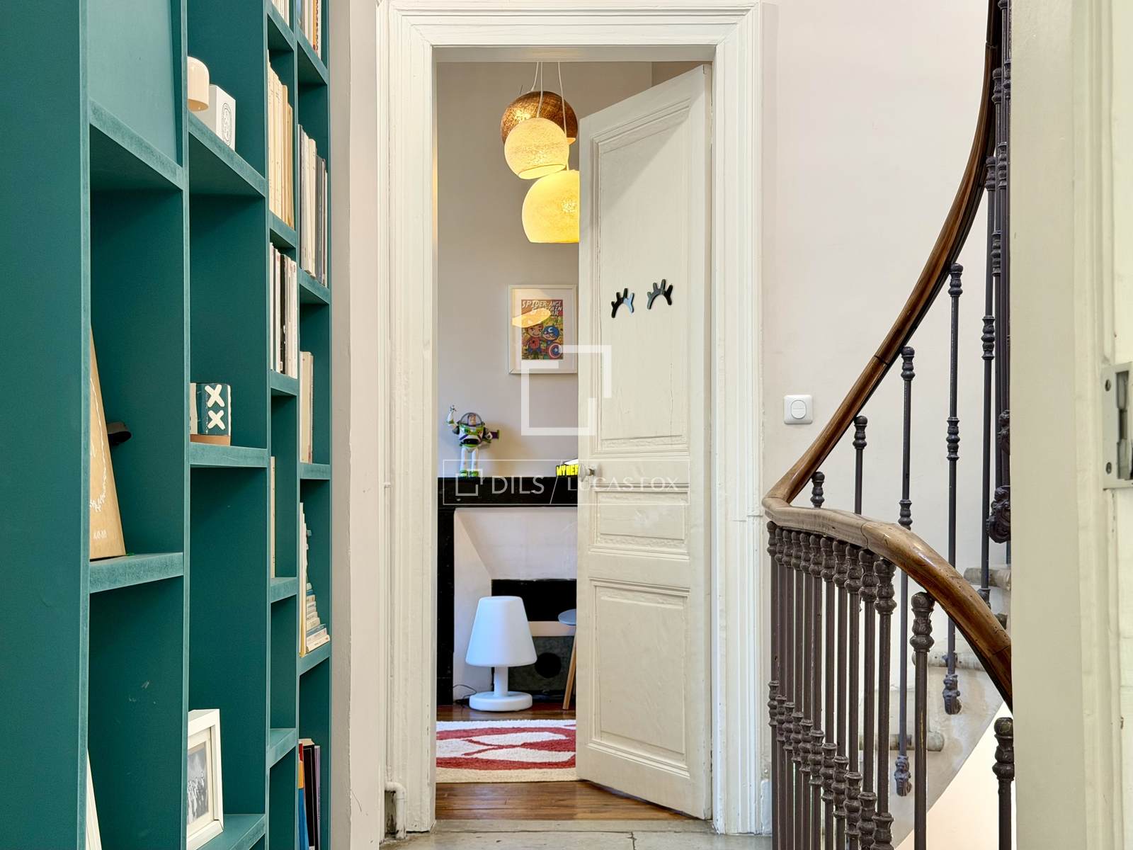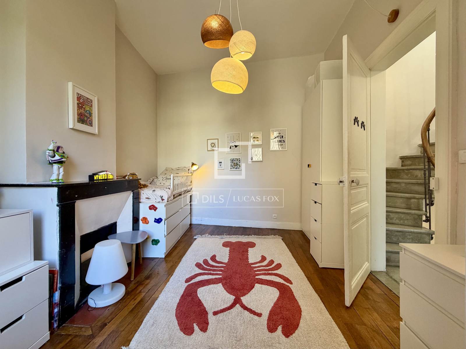 Eenmaal binnen leidt de historische trap naar drie slaapkamers op de begane grond en een vierde (geschikt voor een kind of kantoor) op de eerste verdieping. Een badkamer completeert deze verdieping, terwijl een mediakamer/kantoor zich op de mezzanine bevindt.