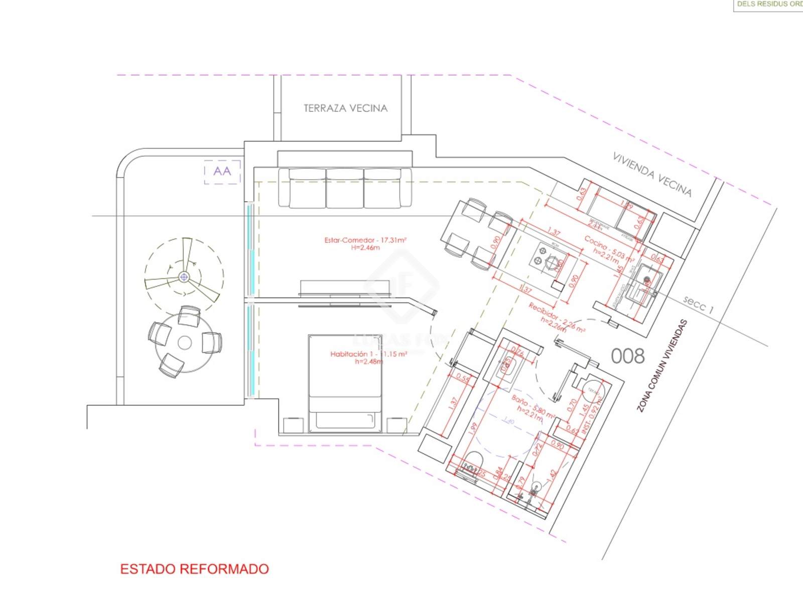 Momenteel wordt het appartement gerenoveerd tot de hoogste standaarden en zal het in mei 2025 klaar zijn om te betrekken. De woning wordt volledig gemeubileerd en gedecoreerd opgeleverd, zoals te zien is op de renders. Alle meubels en accessoires zijn inbegrepen in de verkoop, wat een kant-en-klare woning garandeert!