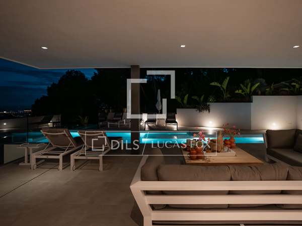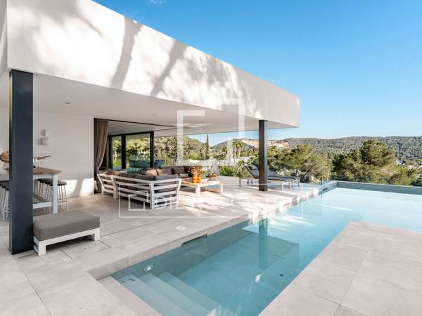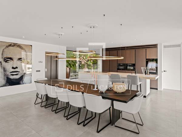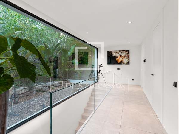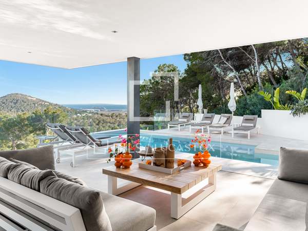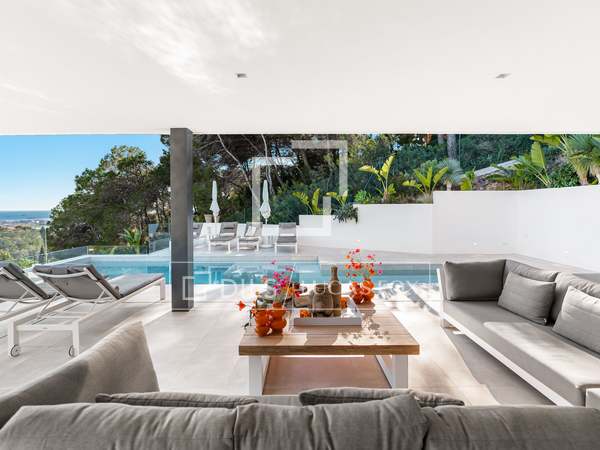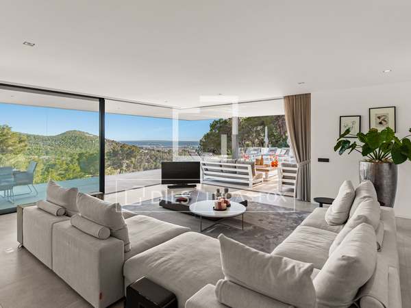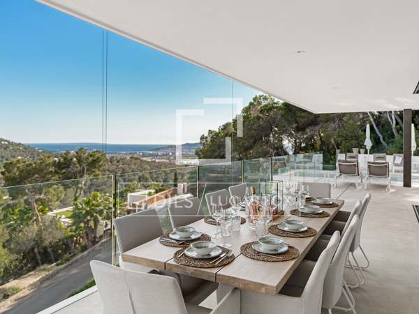Deze prachtige villa, oorspronkelijk gebouwd in 2005 en onlangs gerenoveerd volgens de hoogste normen, staat bovenop de prestigieuze Can Furnet-ontwikkeling en biedt ongeëvenaarde uitzichten op de zee, Formentera en Dalt Vila. Met een totale oppervlakte van 786 m², inclusief een garage van 100 m², biedt het pand 534 m² bruikbare ruimte, grotendeels verdeeld over één niveau - een architectonische zeldzaamheid in Can Furnet die zorgt voor een naadloze doorstroming door het hele huis.