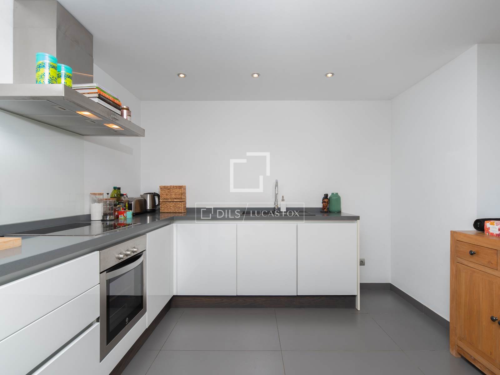 De volledig uitgeruste keuken is doordacht geïntegreerd in de woonruimte, waardoor deze ideaal is om maaltijden te bereiden en tegelijkertijd contact te houden met familie of gasten. Een gastentoilet en directe toegang tot de privégarage maken deze verdieping compleet en bieden praktisch gemak en extra opbergruimte.