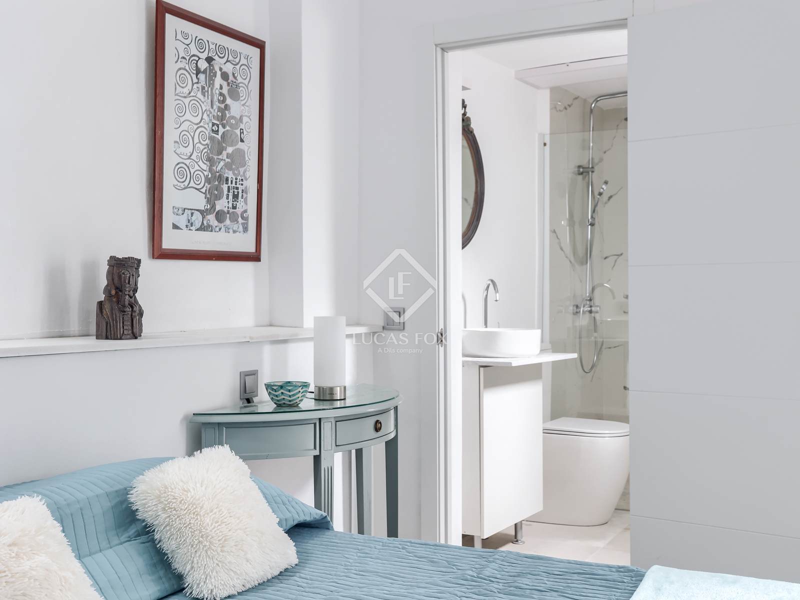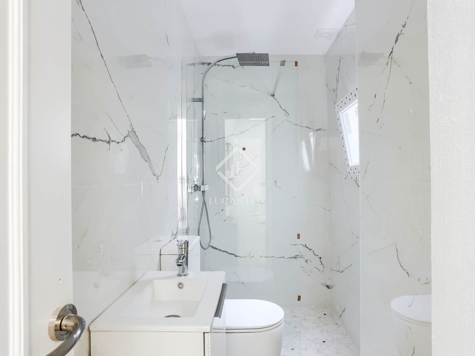 De woning is verdeeld over drie verdiepingen: op de begane grond vinden we een ruime woon-eetkamer met een geïntegreerde keuken, een complete badkamer en een slaapkamer met inbouwkasten, met directe toegang tot een rustige straat. De tweede verdieping herbergt twee lichte slaapkamers met eigen badkamer, perfect voor comfort en privacy. Op de bovenste verdieping bevindt zich een spectaculair terras met een 360° panoramisch uitzicht over de stad, ideaal voor het creëren van een relaxruimte, het installeren van een buitenkeuken of een barbecueplek.