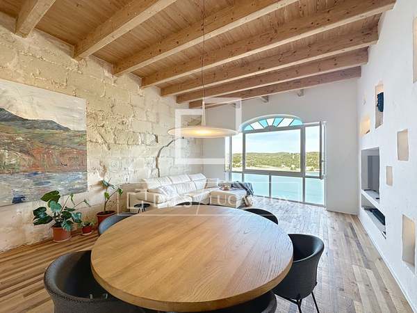 Het huis beschikt over een grote woon-eetkamer met een open keuken en toegang tot een groot, gedeeltelijk overdekt terras met een eethoek en een ontspanningsruimte. Dit is de ideale plek voor vergaderingen, entertainment of gewoon om te ontspannen en te genieten van het heerlijke klimaat van Menorca.