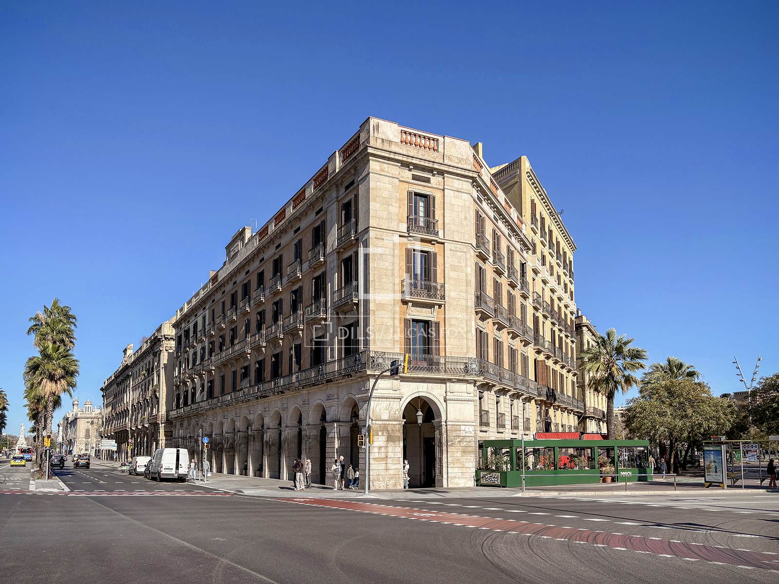 Vrij uitzicht op Passeig Isabel II, Via Laietana en de haven.
