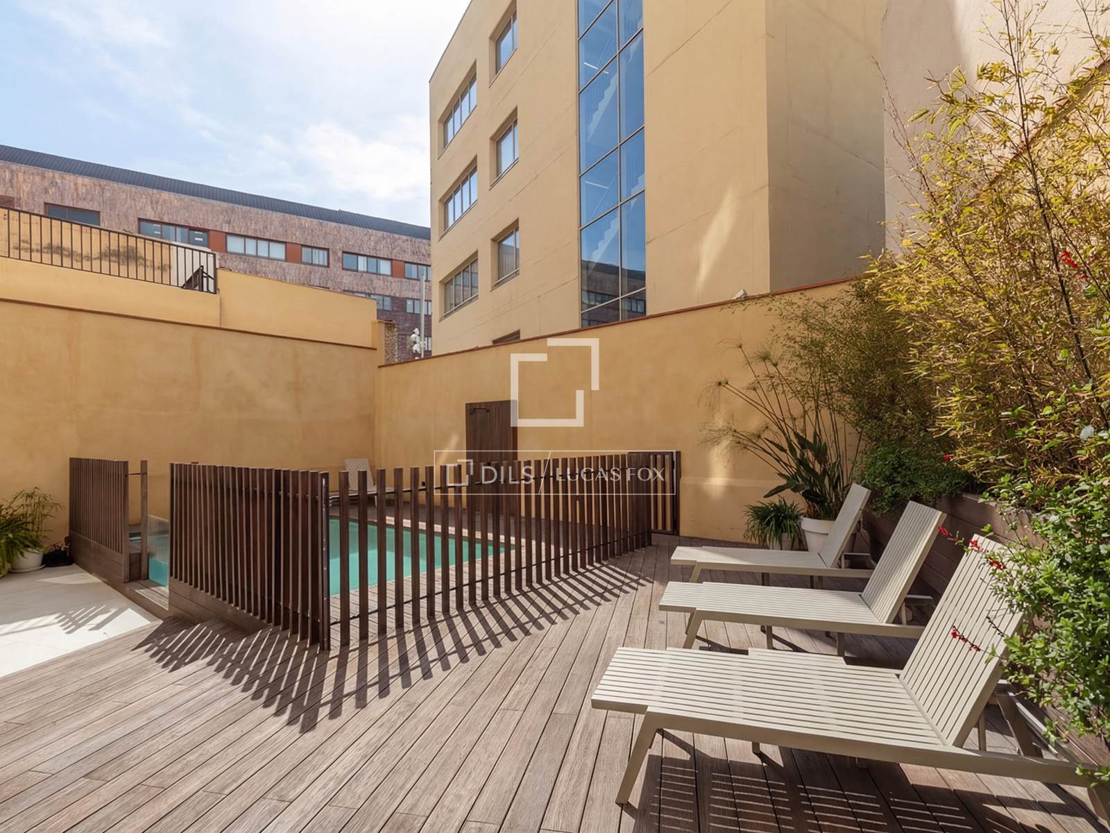 Exclusieve nieuwbouwwoning met drie slaapkamers te koop, in een gerenoveerd gebouw met gemeenschappelijk zwembad in het centrum van Barcelona.