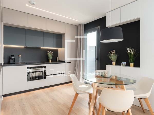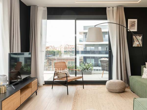 Appartement met 2 slaapkamers en een terras te koop in een nieuwbouwcomplex met een gemeenschappelijke tuin, zwembad en fitnessruimte, te koop in Sant Andreu, Barcelona.