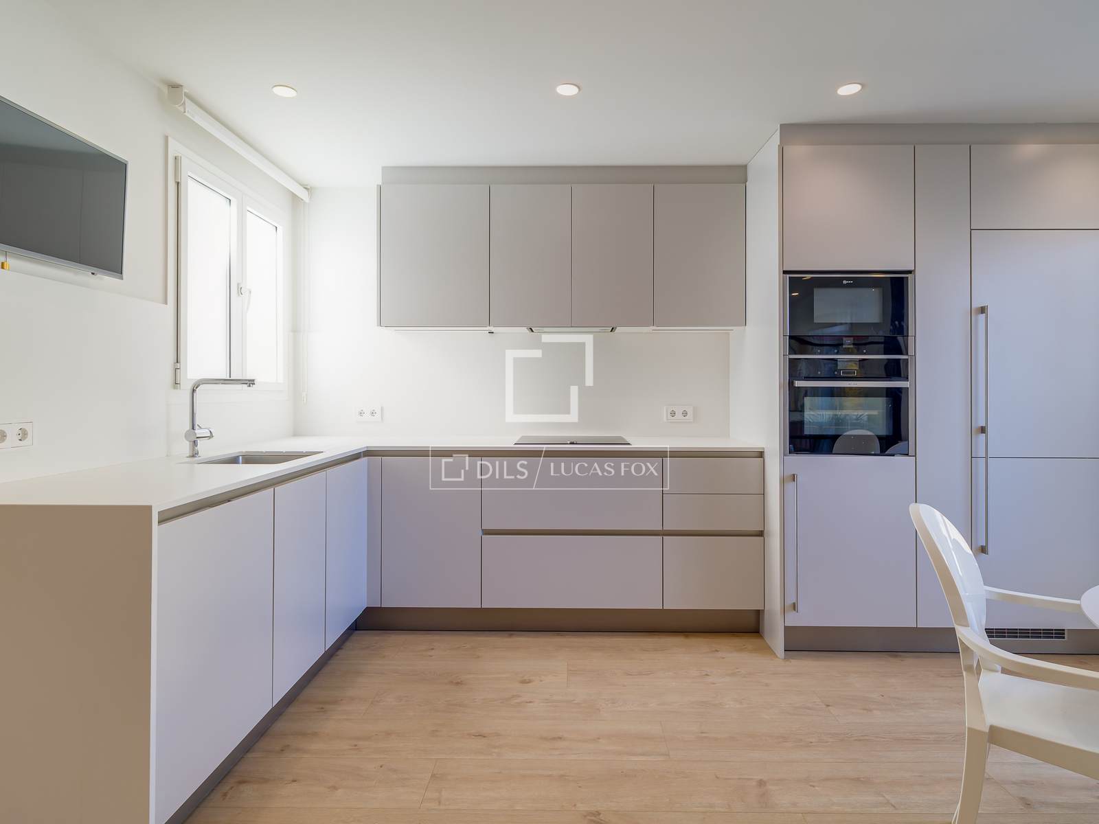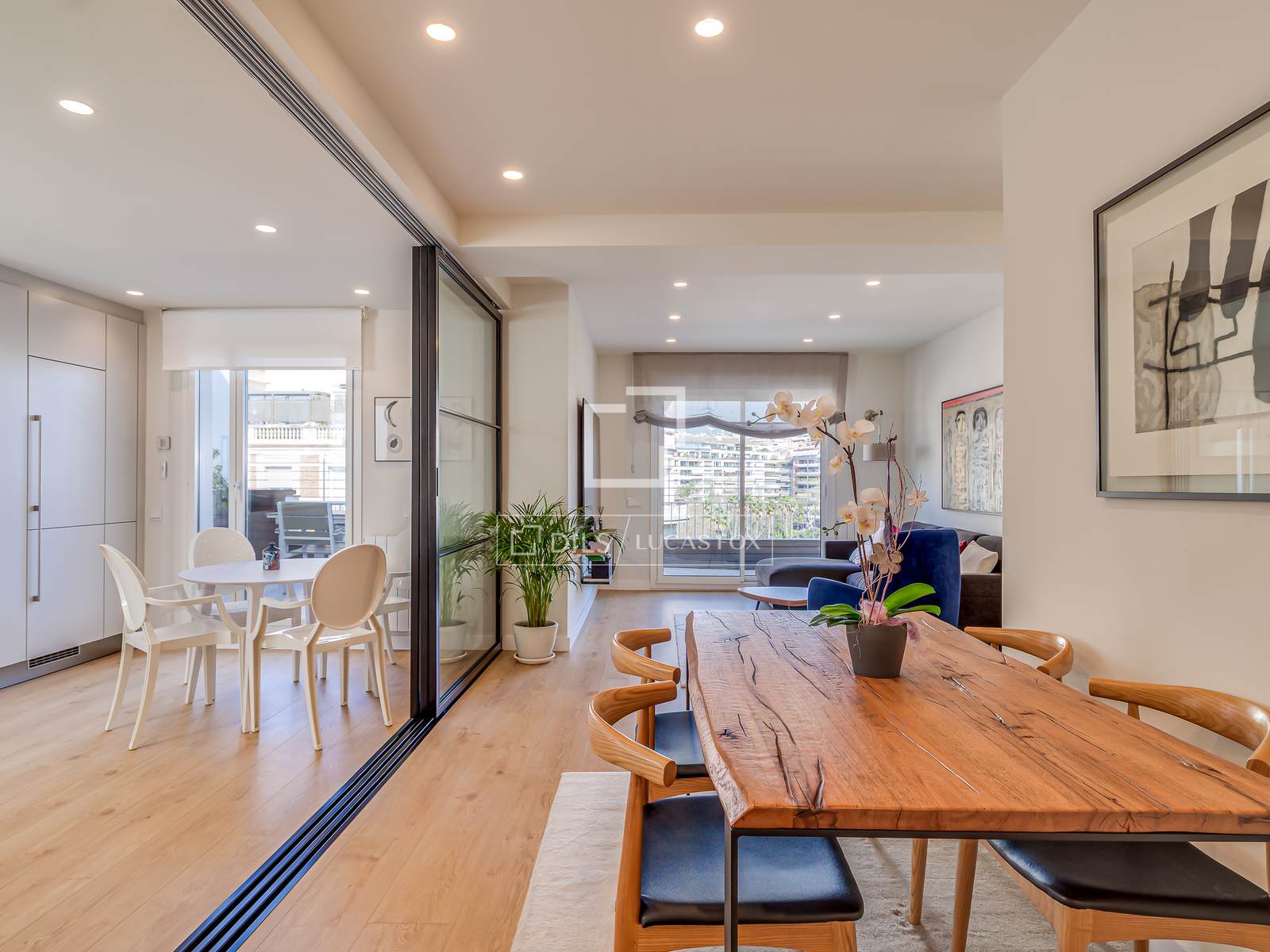 De ruime woon- en eetkamer komt uit op een fantastisch terras met een onbelemmerd uitzicht op het Turó Park, waardoor een naadloze verbinding tussen binnen en buiten ontstaat. Het terras, dat zowel vanuit de woonkamer als de aparte keuken bereikbaar is, wordt een ware stedelijke oase: perfect voor een ontbijt in de zon, dineren in de buitenlucht of gewoon ontspannen met een prachtig uitzicht.