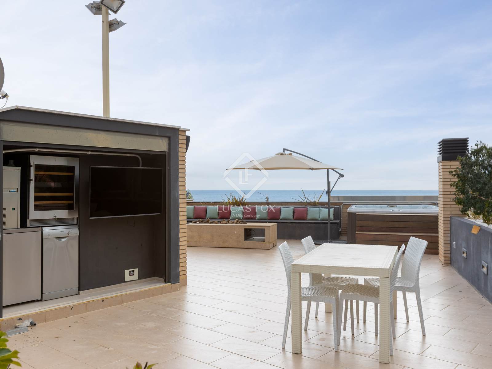 Op het dakterras bevindt zich een fantastisch en ruim chill-outterras van 137 m² met panoramisch uitzicht op zee. Het terras beschikt over een barbecueplek, jacuzzi en ingebouwde televisie, perfect voor zomerfeesten met vrienden en familie.