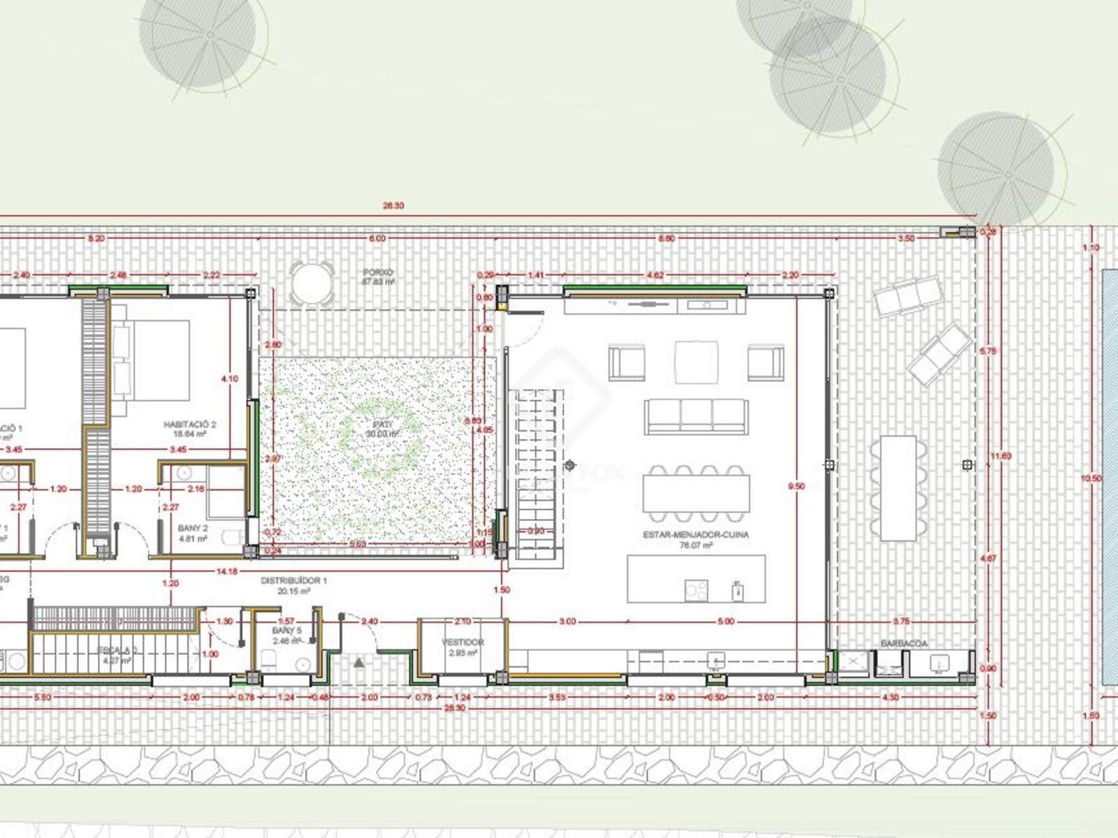 Het buitengewone huis ligt in een woonwijk van Sant Andreu de Llavaneres, een prestigieuze stad aan de kust van Maresme. Het gebied staat bekend om zijn rust en fantastische uitzichten. De bekende golfbanen en de prestigieuze jachthaven El Balís liggen op slechts een paar minuten rijden met de auto. Het centrum van Barcelona ligt op 30 minuten afstand en de stranden liggen op 10 minuten rijden.