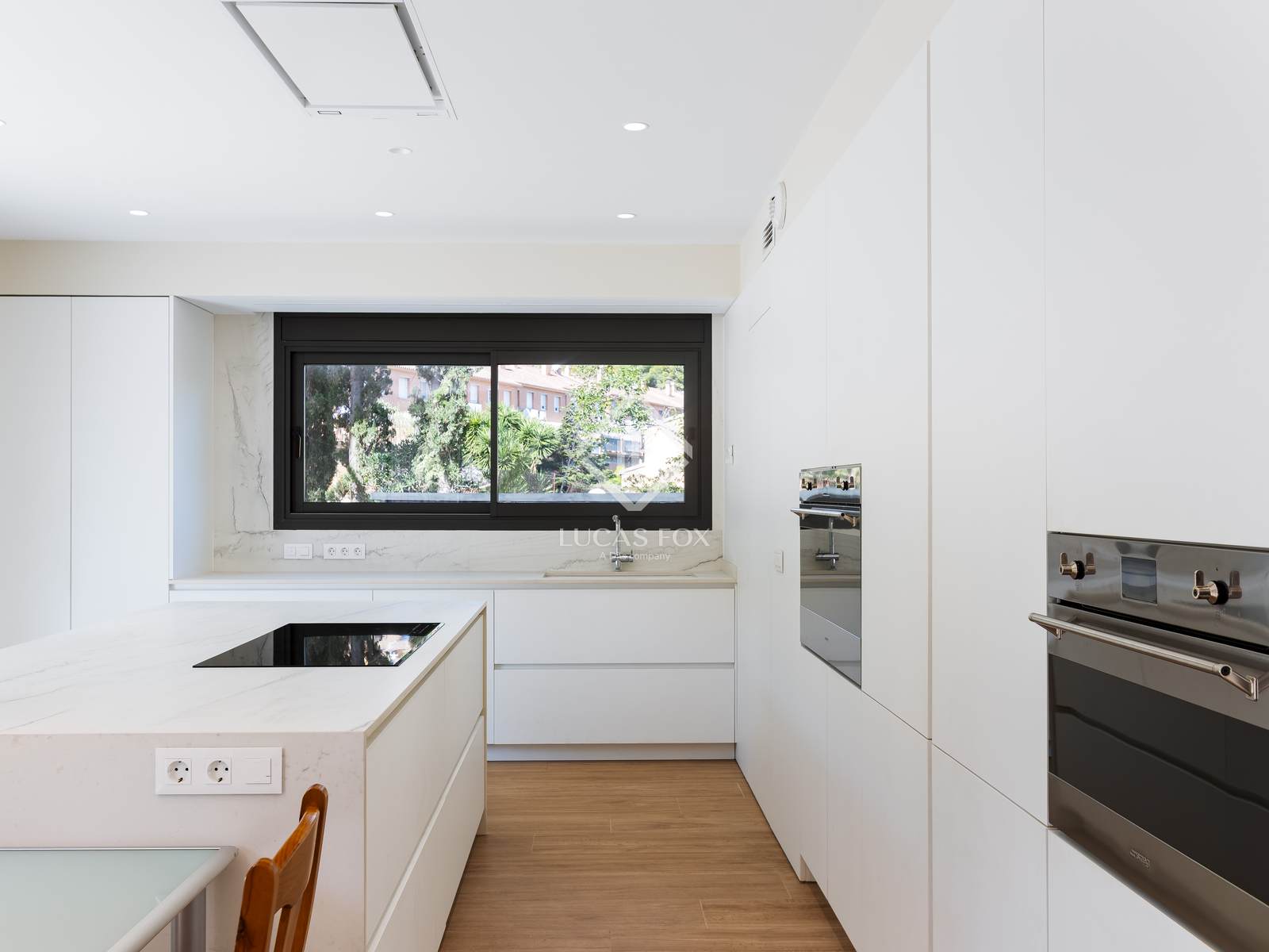 De ruimtes zijn opnieuw ontworpen om ruimtelijkheid, licht en functionaliteit te verbeteren. De woonkamer bestaat uit een ruime woonkamer van 54 m² met open haard, die open is naar de eetkamer van 20 m² en de keuken van 30 m², volledig uitgerust met hoogwaardige SMEG-apparatuur, een groot kookeiland en een praktische ontbijtbar met openslaande deuren. Deze ruimtes bieden directe toegang tot de tuin, het zoutwater-infinityzwembad en een fantastische buitenruimte waar u kunt genieten van het mediterrane klimaat en het uitzicht.