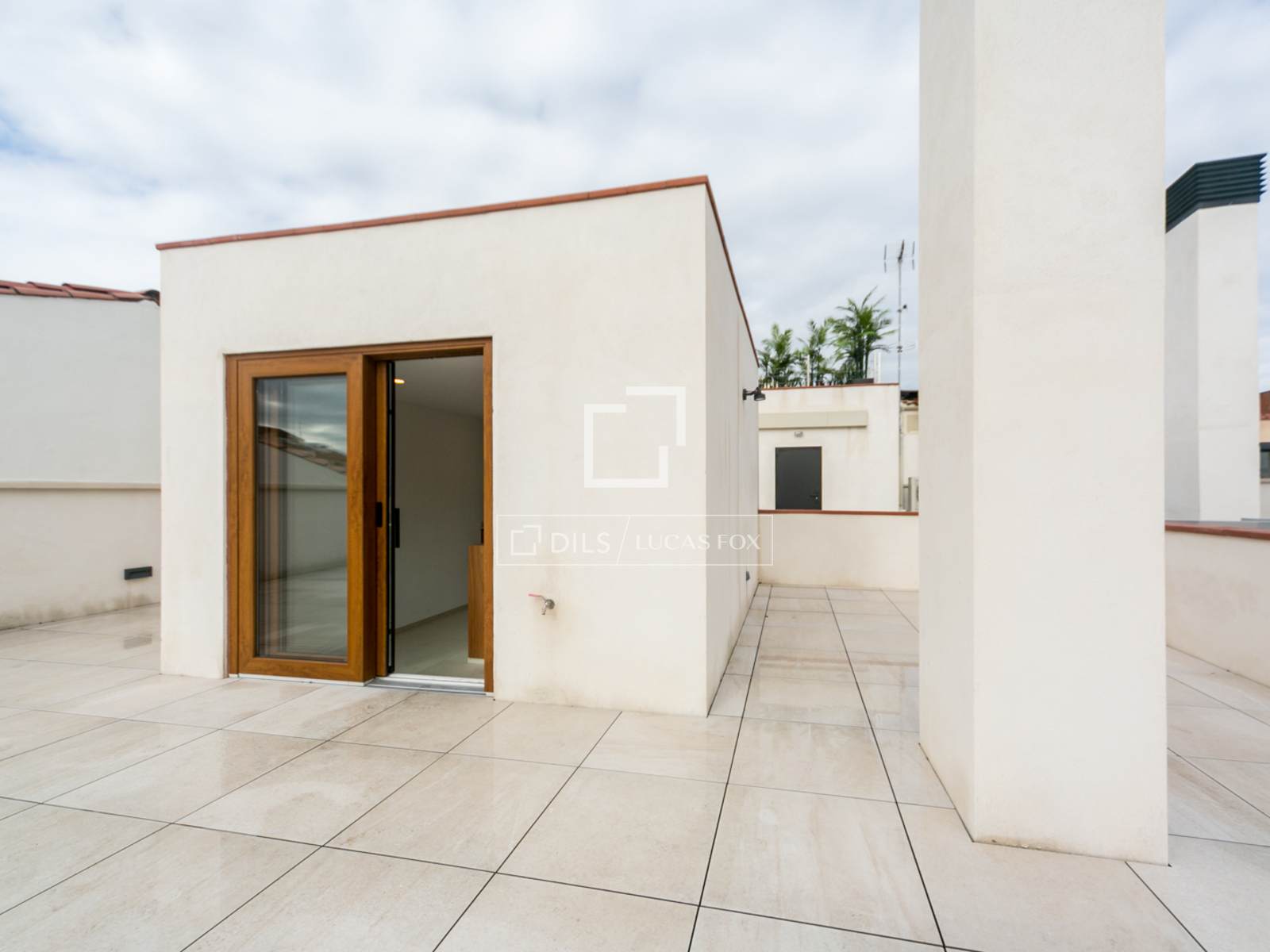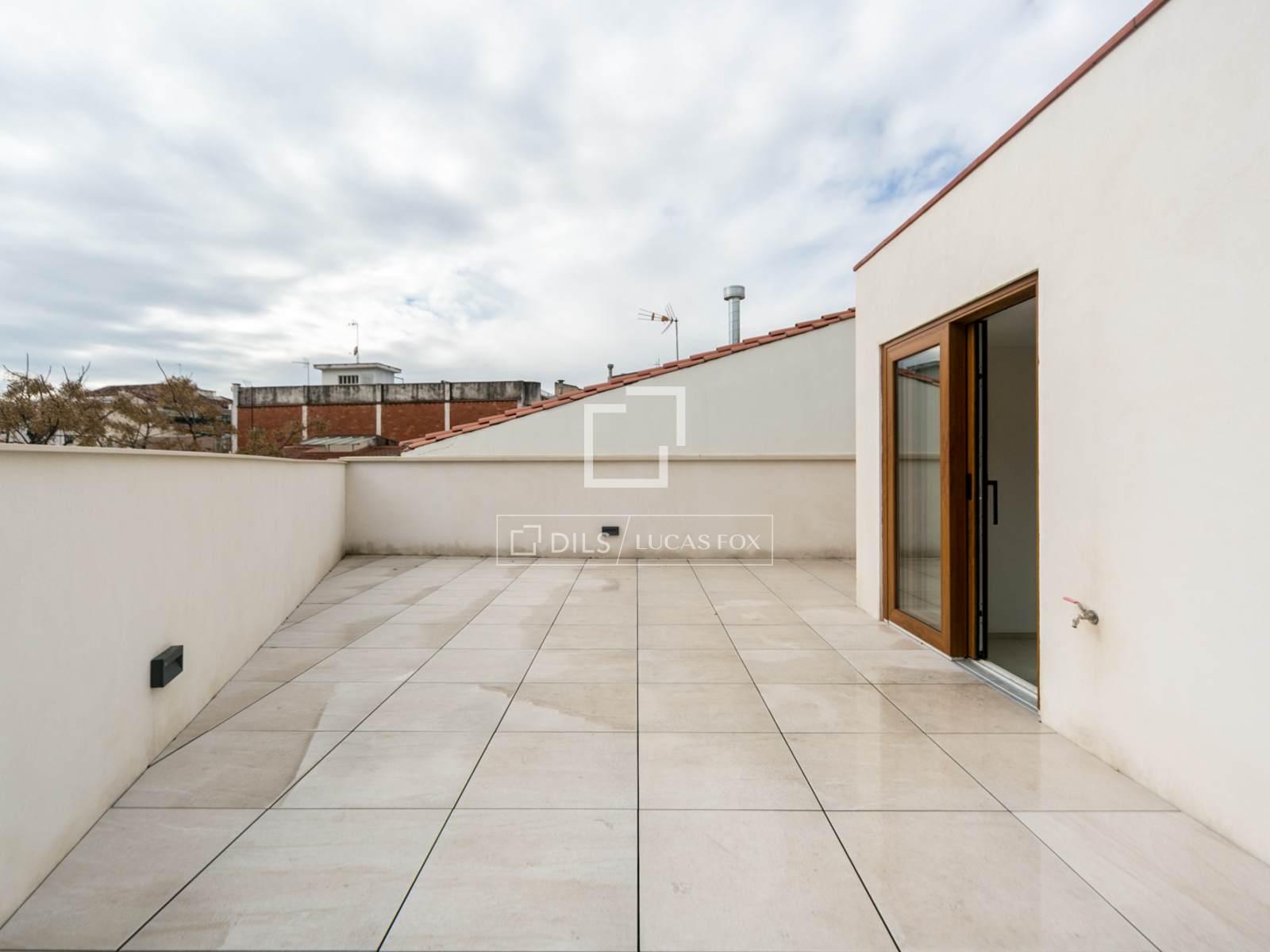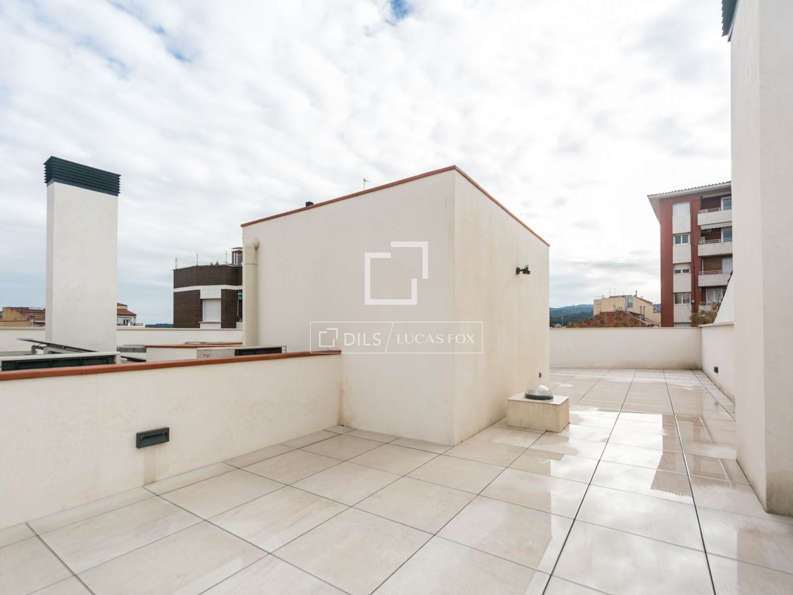 De bovenverdieping biedt toegang tot een spectaculair privéterras van 80 m², ideaal voor het creëren van verschillende sferen en het genieten van privacy en een onbelemmerd uitzicht op de bergen en de stedelijke omgeving.