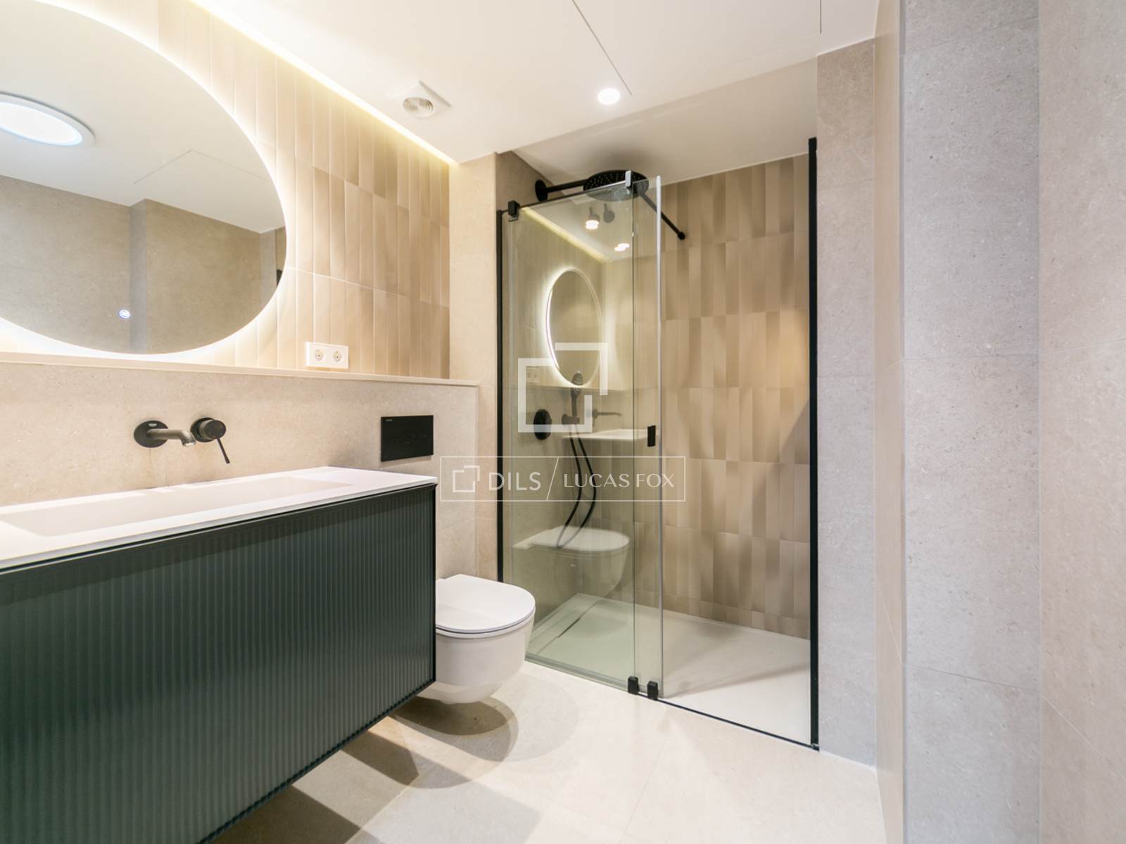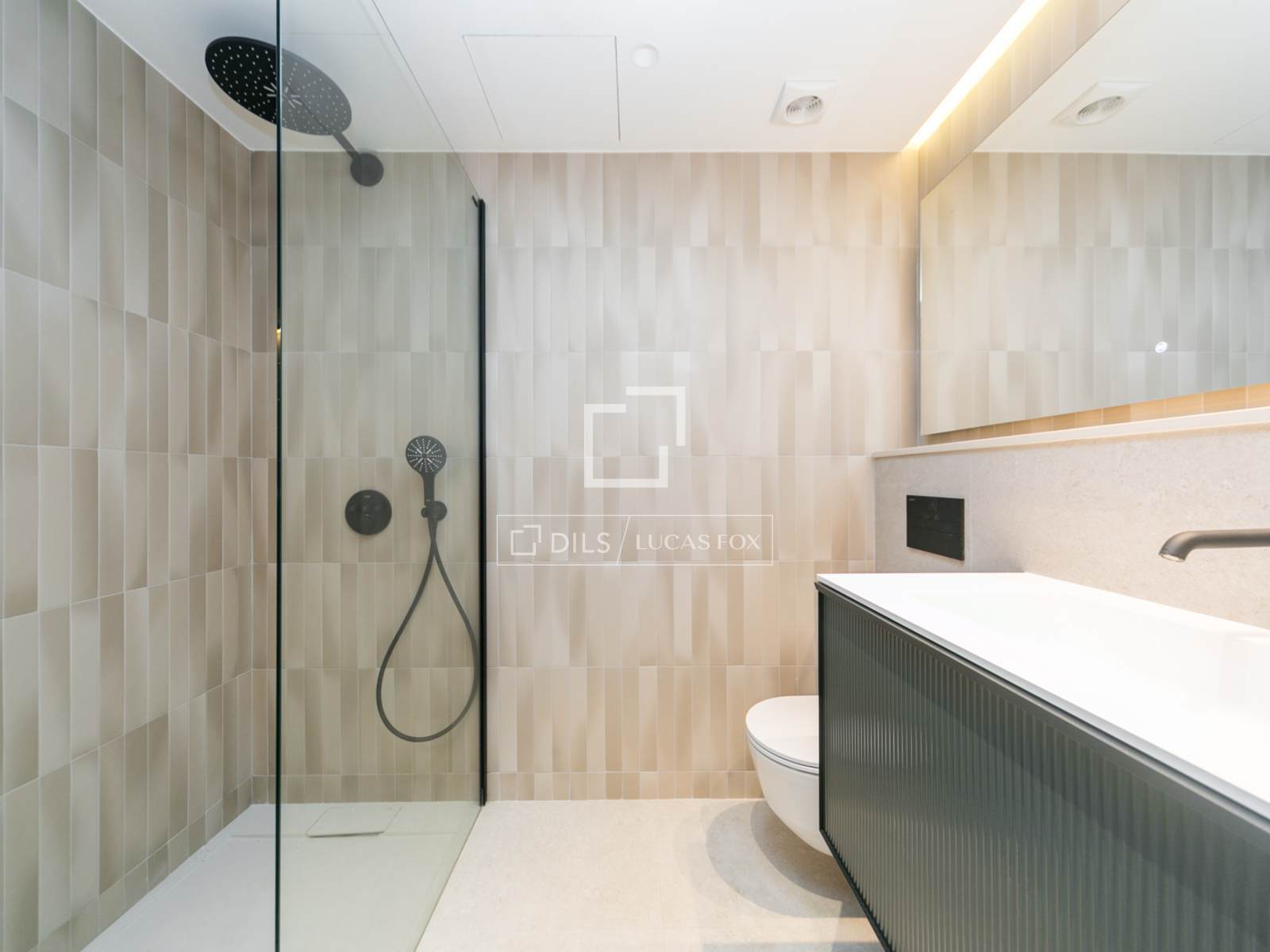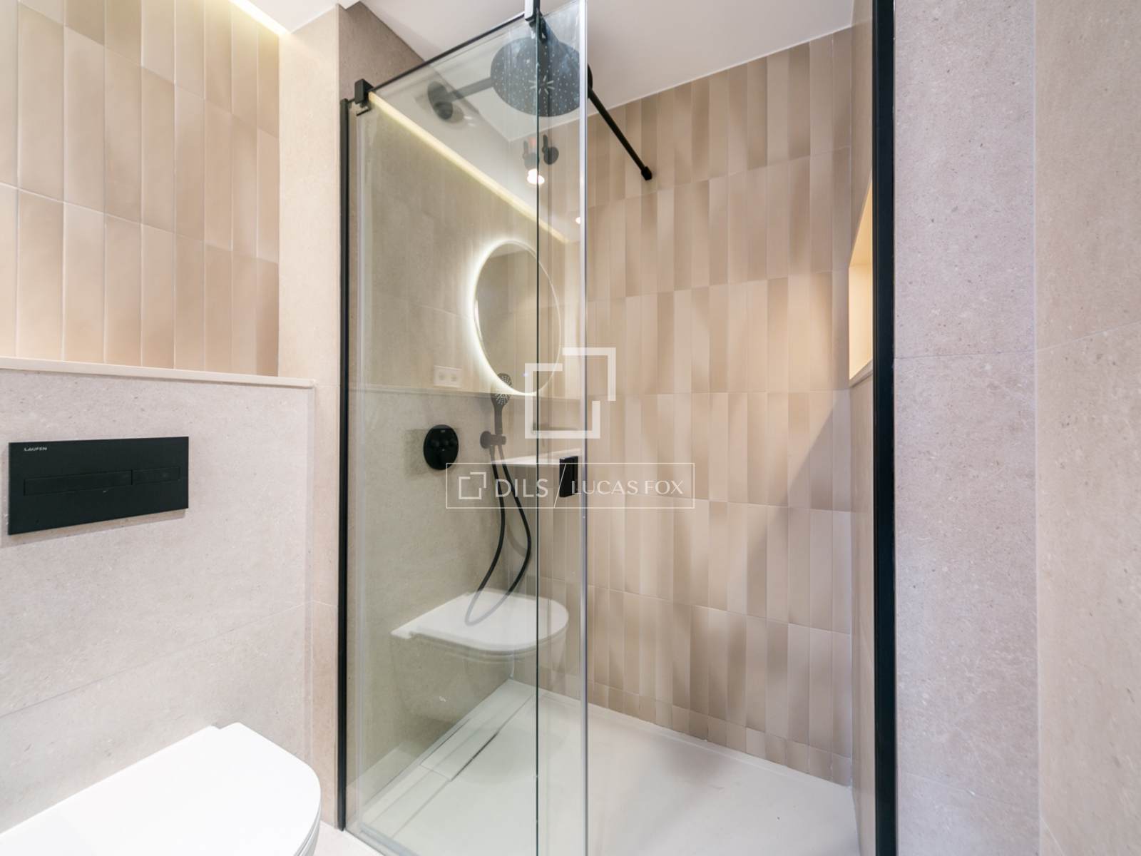 De bovenverdieping biedt toegang tot een spectaculair privéterras van 80 m², ideaal voor het creëren van verschillende sferen en het genieten van privacy en een onbelemmerd uitzicht op de bergen en de stedelijke omgeving.