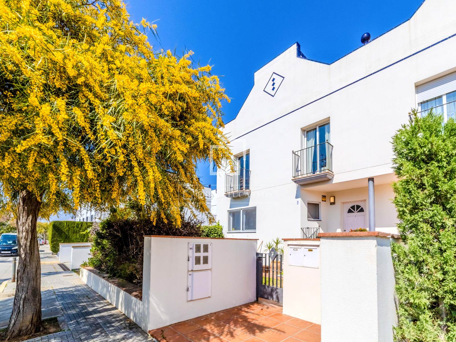 Halfvrijstaande woning met eigen garage en toegang tot een gemeenschappelijk zwembad, tennisbaan en fitnessruimte, gelegen nabij het strand en het centrum van Sitges.