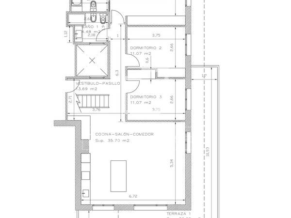 Het pand is erg licht omdat het twee balkons heeft met uitzicht op de Plaza de Bilbao en ook een groot balkon met uitzicht op de Calle Alfonso VIII, een voetgangersstraat met rustige terrassen, die het plein verbindt met de Catedral del Buen Pastor. Het appartement heeft een oppervlakte van 110 m² bebouwd en 83 m² bruikbaar, verdeeld in een ruime woon-eetkamer, met toegang tot twee balkons met frontaal uitzicht op de fontein op het Bilbao-plein en twee tweepersoonsslaapkamers, met inbouwkasten.