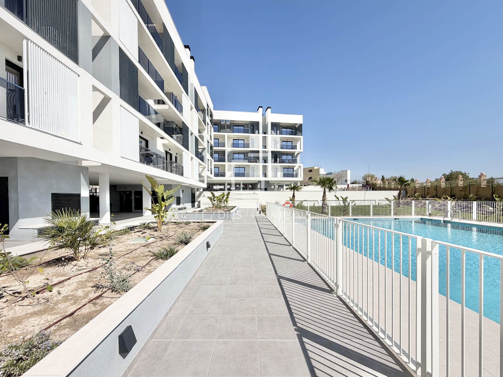Nieuw appartement te koop, drie ruime slaapkamers, gemeenschappelijk zwembad, lichte woonkamer, moderne keuken, terras, eigen garage inbegrepen, rustige en goed bereikbare buurt.