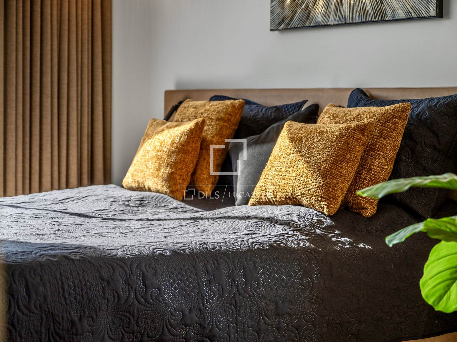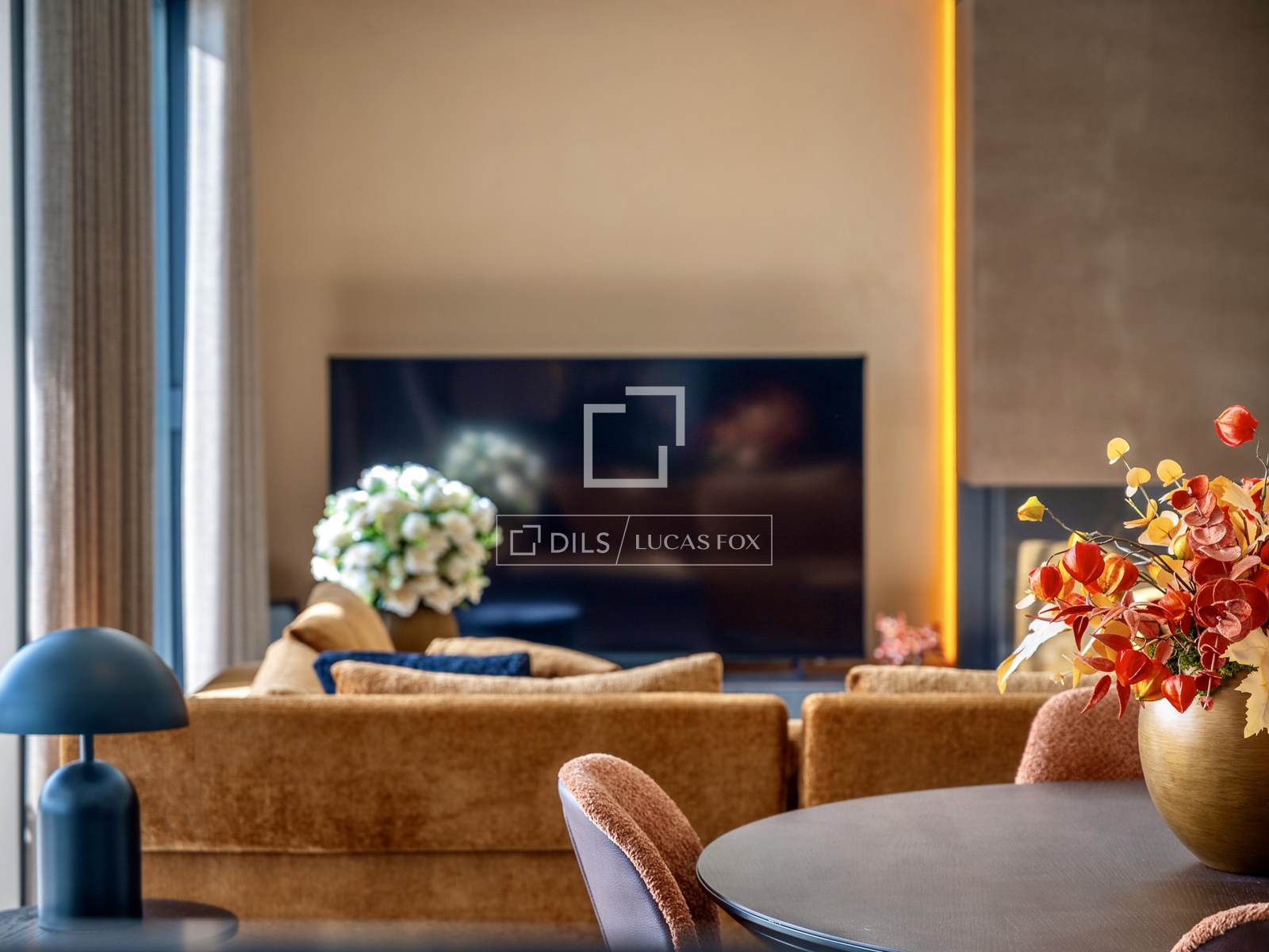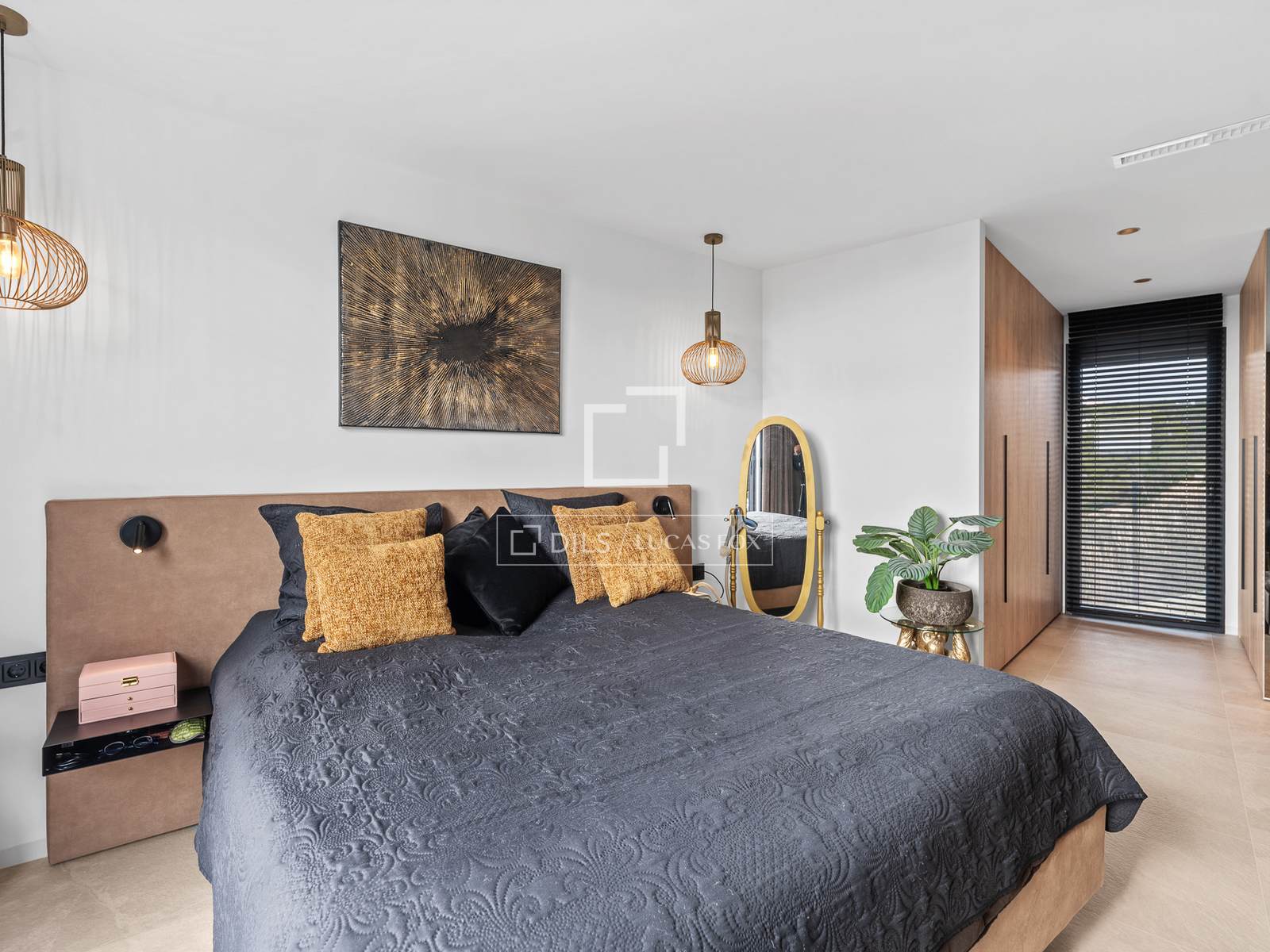 Het hart van de woning is de spectaculaire open woon- en eetkamer met een geïntegreerde keuken en een groot kookeiland. Deze ruime open ruimte van meer dan 75 vierkante meter is ontworpen voor zowel dagelijks genot als sociale bijeenkomsten, met grote ramen die direct toegang bieden tot de terrassen en de buitenruimte. Op deze verdieping bevinden zich drie ruime slaapkamers en twee complete badkamers, waarvan één en-suite bij de hoofdslaapkamer, die tevens beschikt over een kleedkamer.
