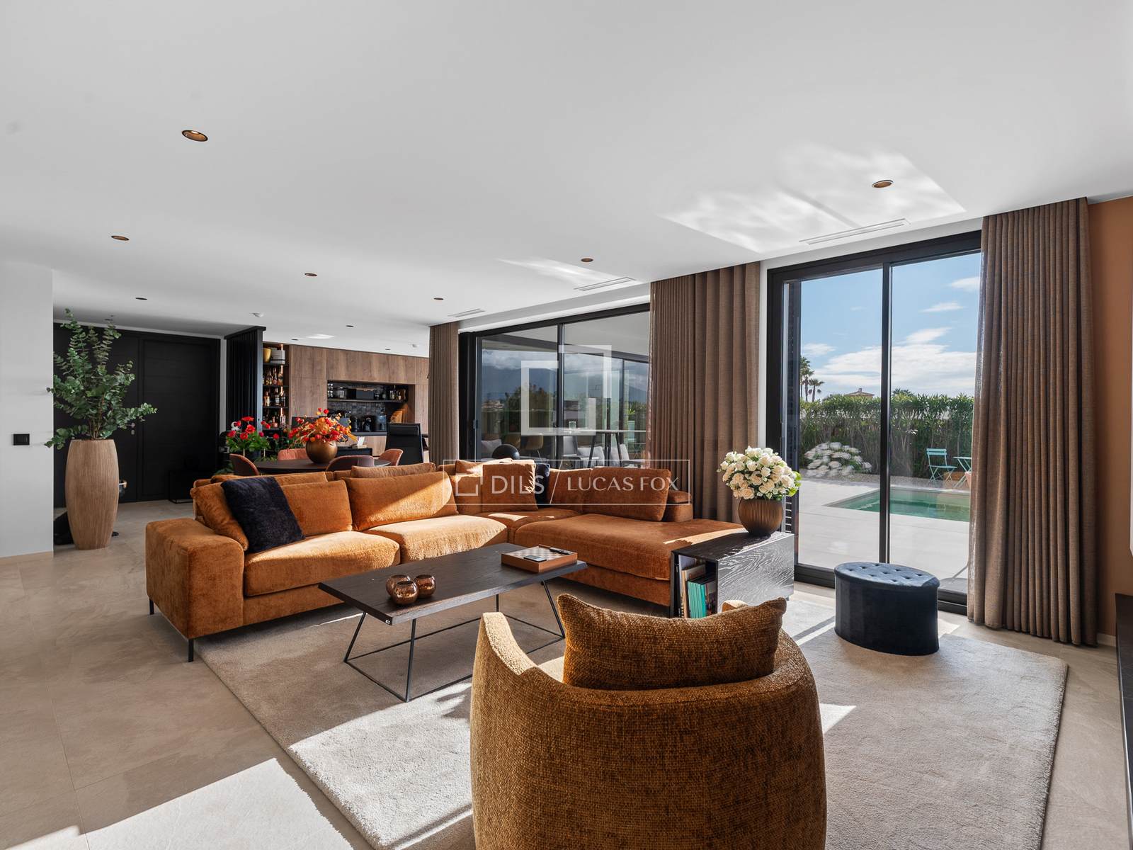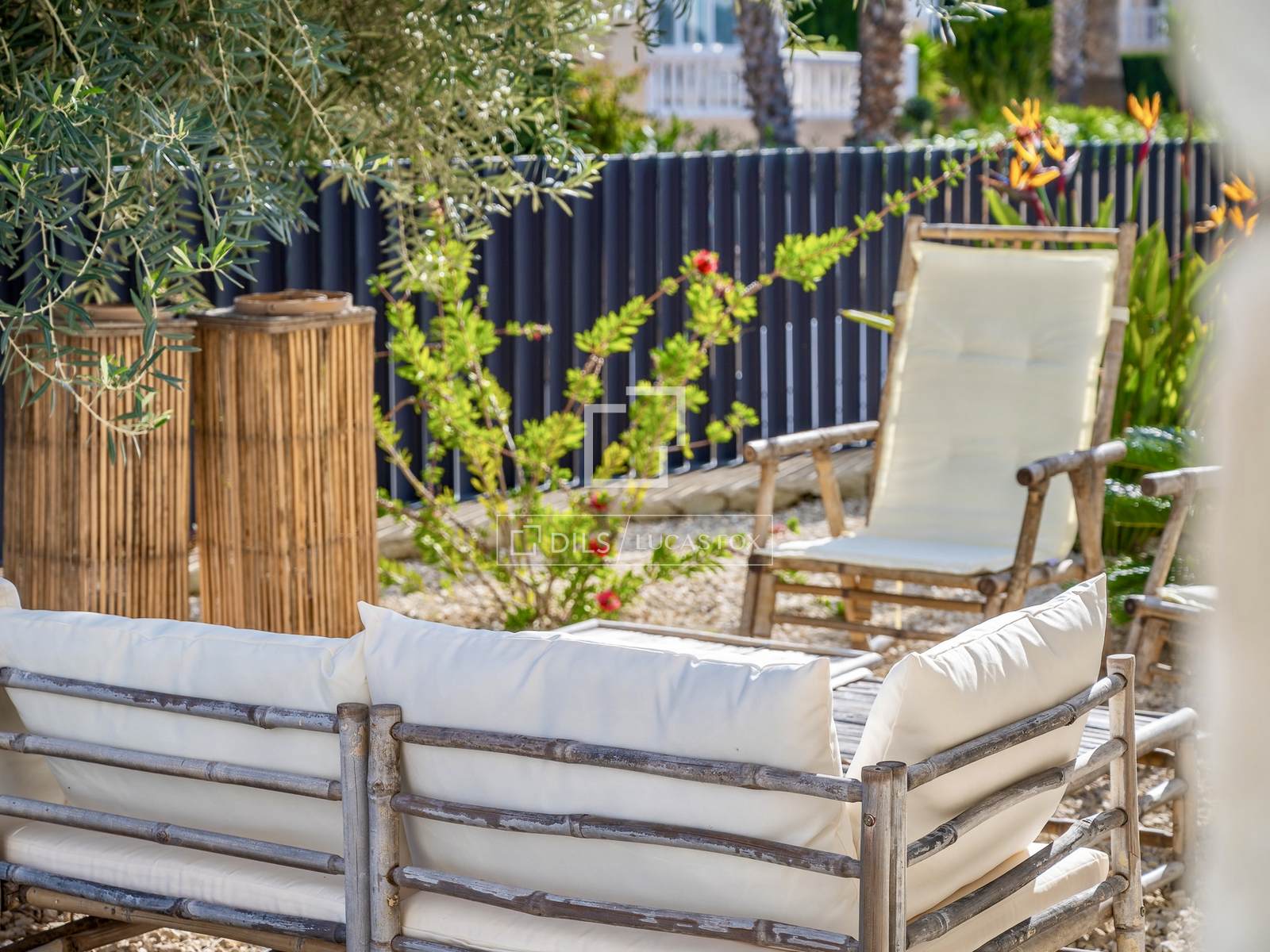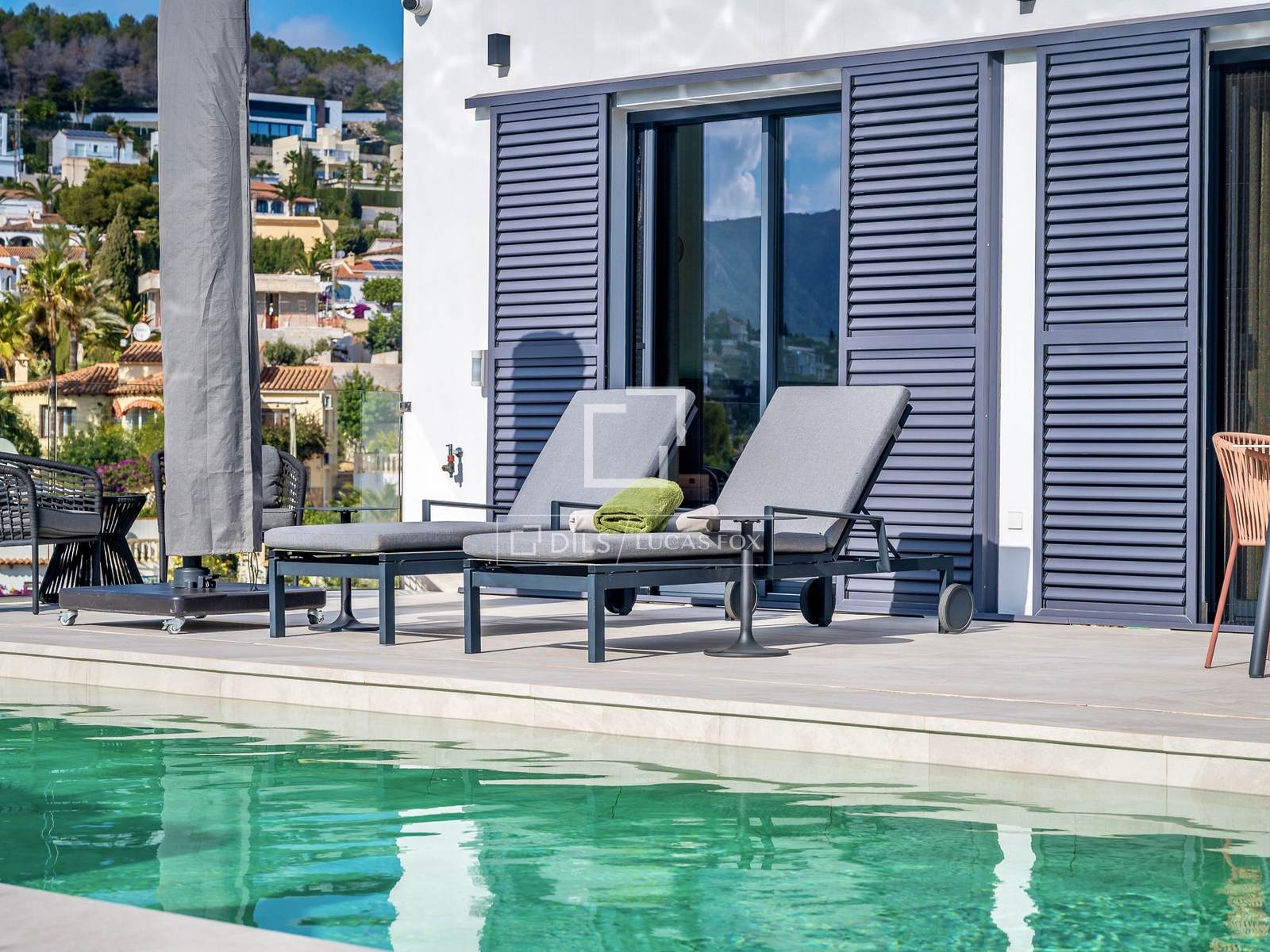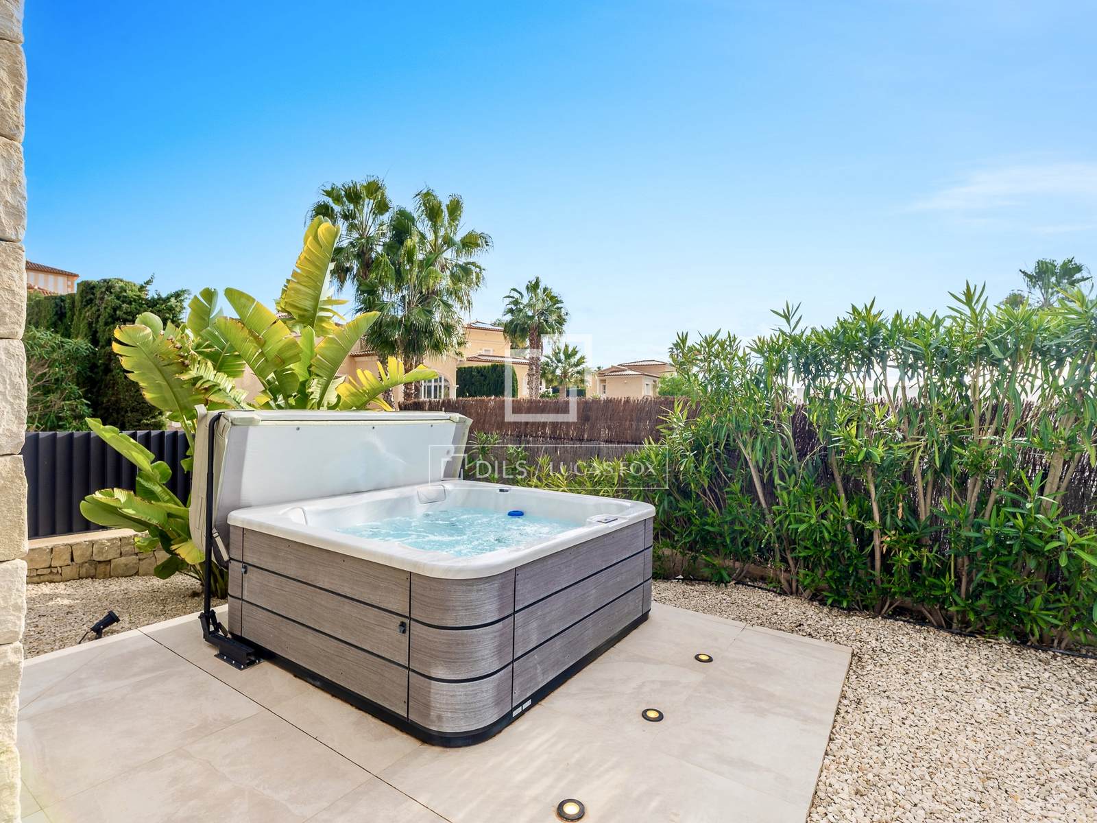 De buitenruimte is ontworpen als een waar genotsparadijs. Hoogtepunten zijn onder meer het verwarmde zwembad van 10 x 3,5 meter met een zoutchloreringssysteem en automatische afdekking, een jacuzzi voor vijf personen, een buitendouche en diverse ontspanningsruimtes en terrassen, ideaal om het hele jaar door van het mediterrane klimaat te genieten.