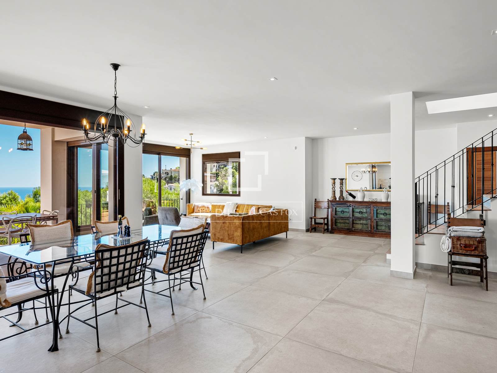 Zodra je de hal binnenstapt, word je overweldigd door een adembenemend uitzicht op de zee, wat de toon zet voor het hele huis. Een gevoel van licht, ruimte en horizon is overal aanwezig; grote glaspartijen omlijsten het panoramische uitzicht en creëren een open verbinding tussen binnen en buiten.