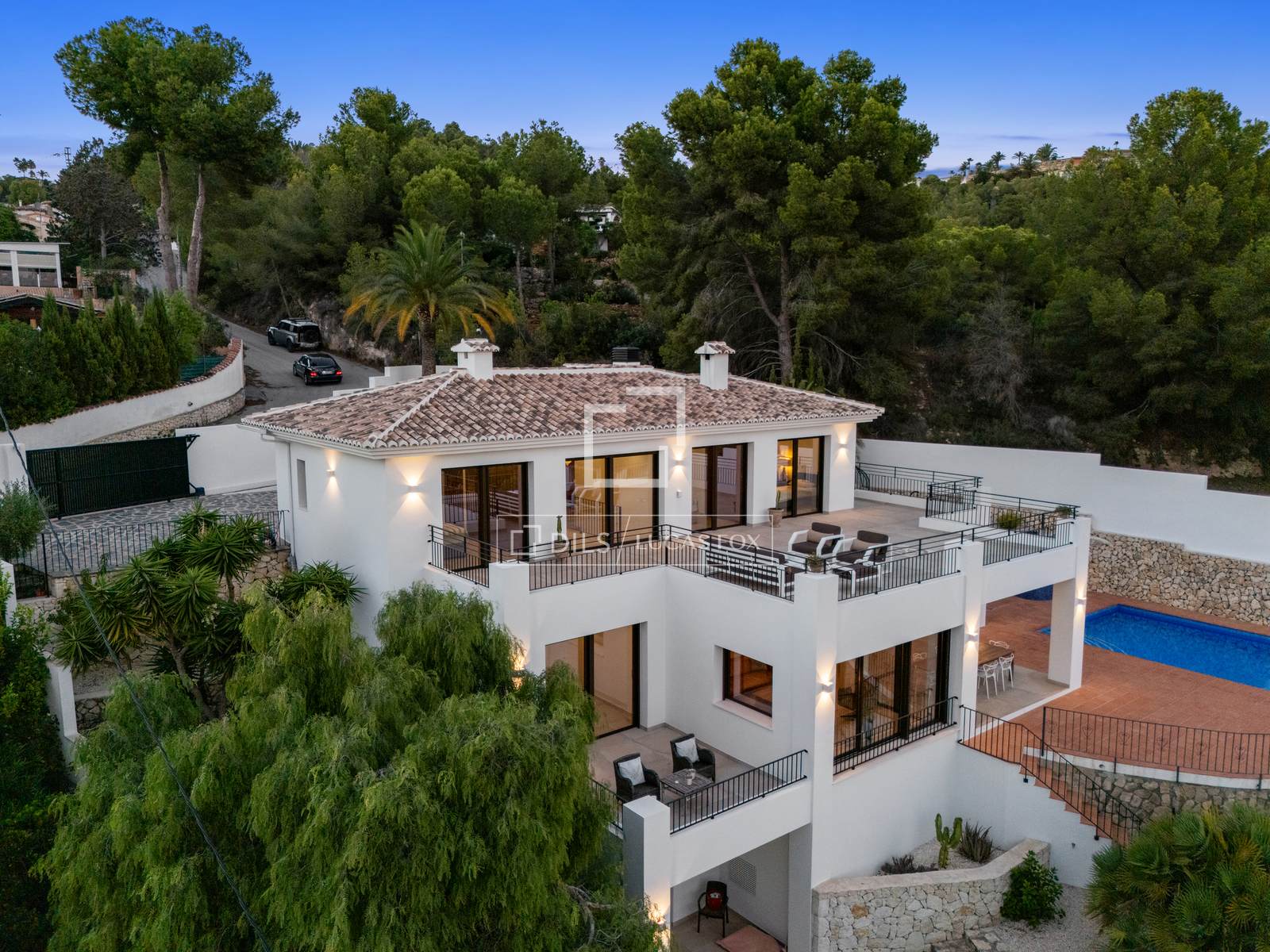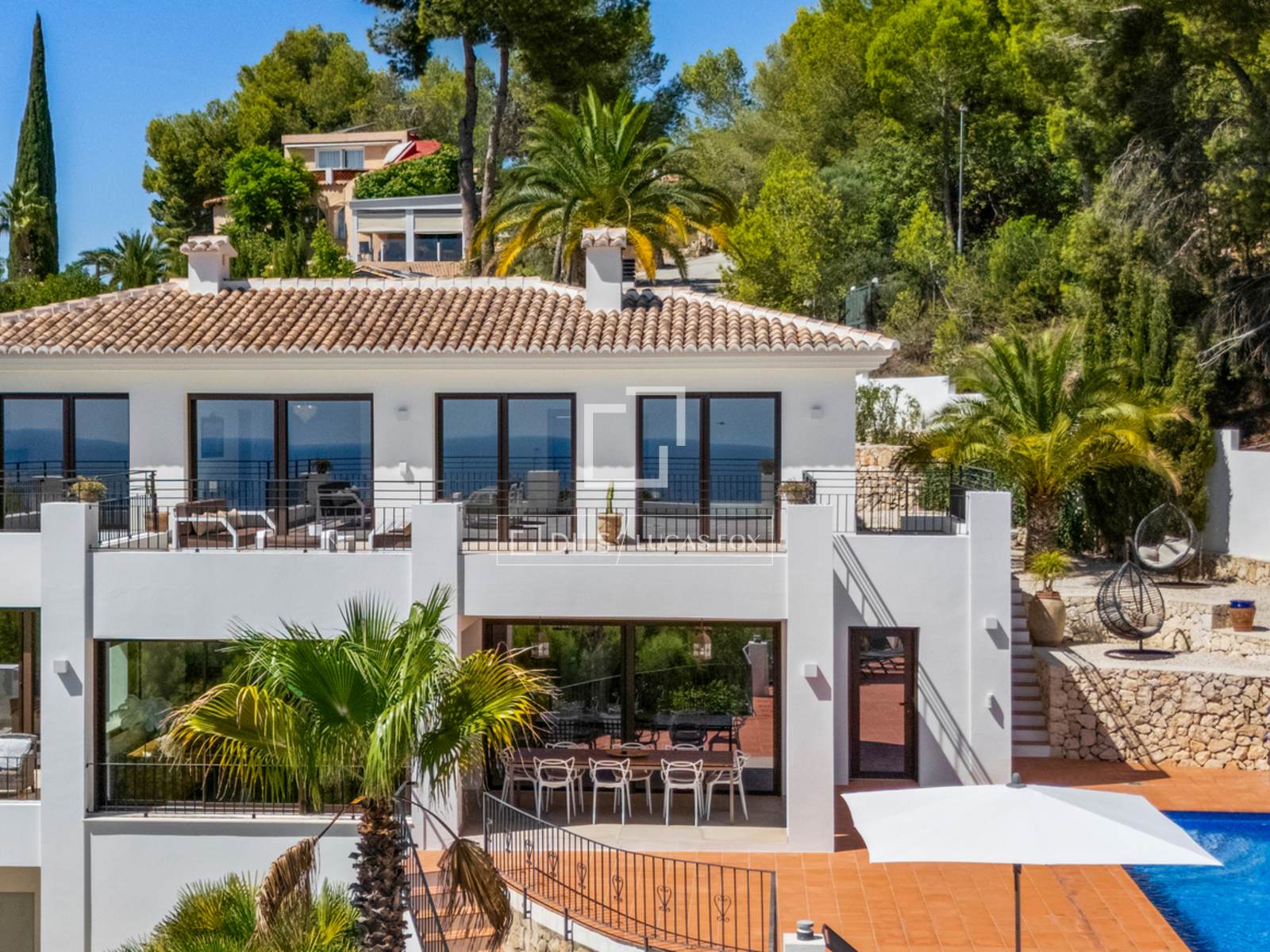 Een zeldzame kans om een nieuwbouwvilla van uitzonderlijke kwaliteit in een moderne Andalusische stijl te verwerven. De villa is in 2022 opgeleverd door een gerenommeerd bouwbedrijf en ontworpen door een bekende architect. Het pand kenmerkt zich door een constant hoge standaard en zorgvuldig geselecteerde materialen. De villa is gebouwd over twee verdiepingen op een perceel van circa 1.200 m² met uitzicht op zee, strategisch gelegen tussen het kosmopolitische Moraira en het charmante Benissa. Het strand ligt op slechts 2,5 km afstand en de dichtstbijzijnde restaurants op slechts 900 meter loopafstand.