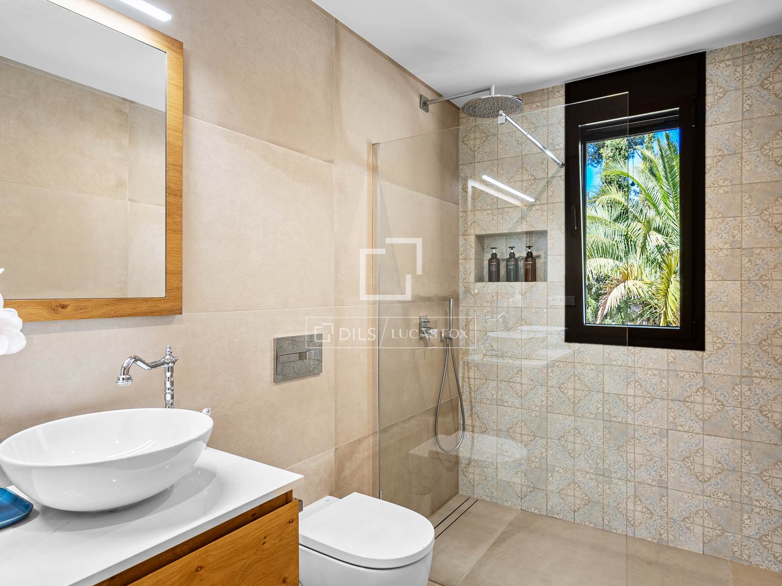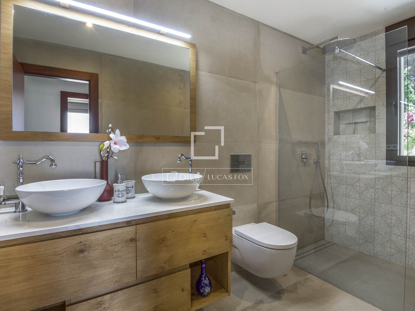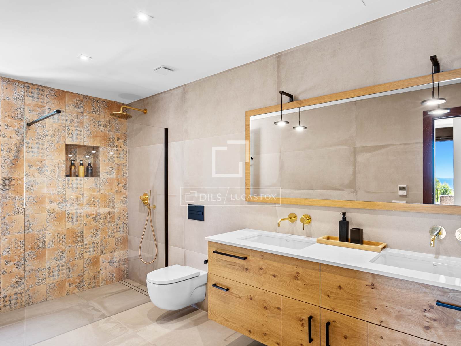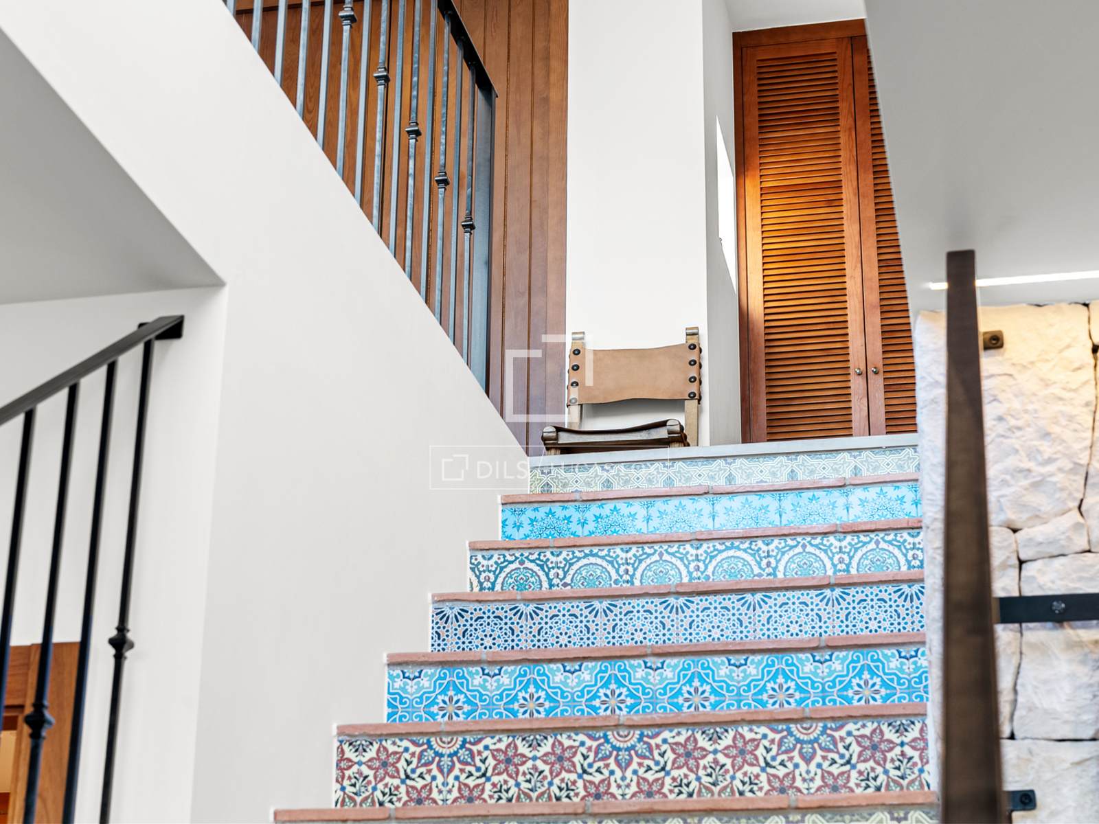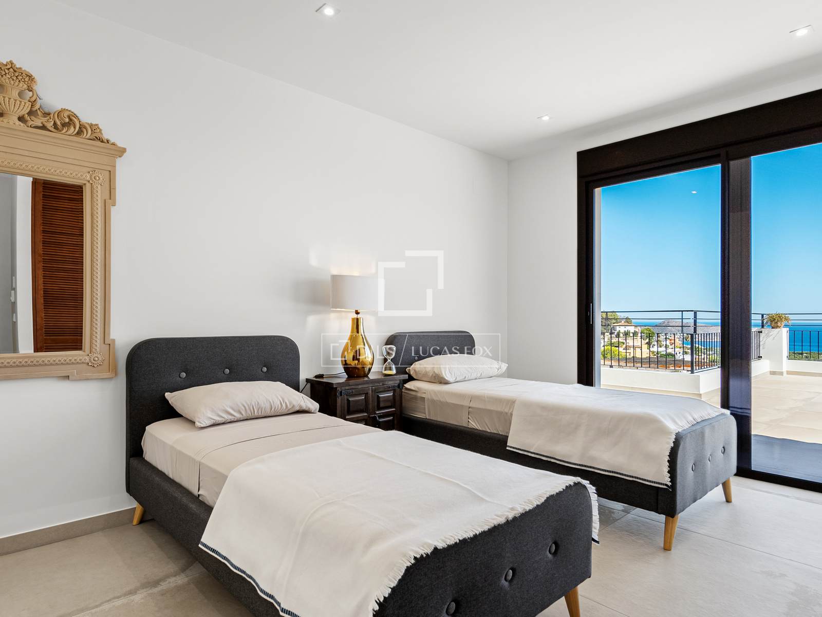 De bovenverdieping beschikt over drie slaapkamers: een master bedroom met een elegante en-suite badkamer en twee extra tweepersoonsslaapkamers die een grote, moderne badkamer delen. Alle kamers en de hal komen direct uit op een indrukwekkend terras van 100 m² – een ideale plek voor een kop koffie in de ochtend, om te zonnebaden of gezellig samen te zijn met vrienden, terwijl u geniet van de eindeloze licht- en kleurwisselingen boven de Middellandse Zee. Op deze verdieping bevindt zich tevens een aparte wasruimte en een trap naar de benedenverdieping.
