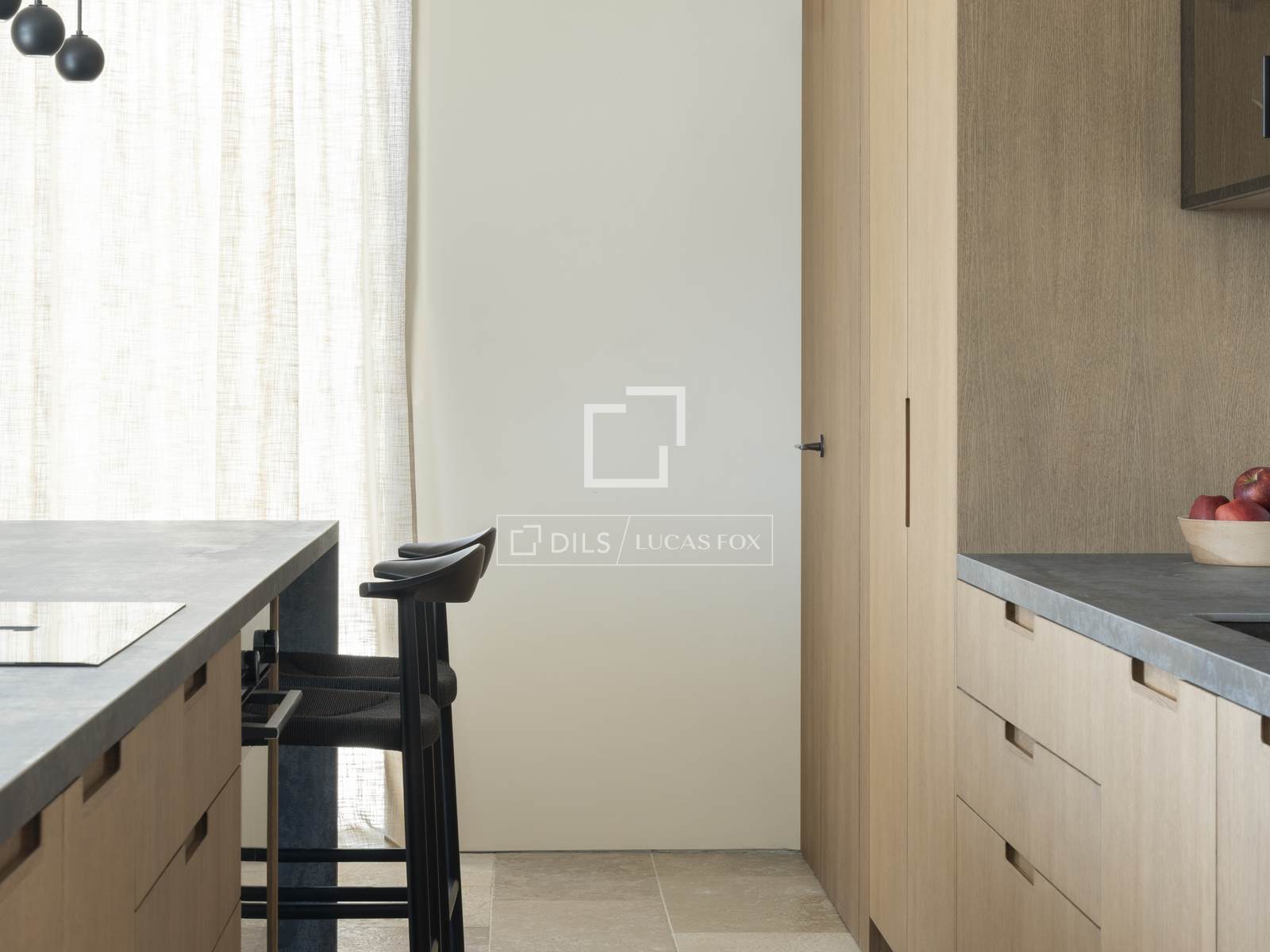 De entree is zowel discreet als weloverwogen: een privé parkeerplaats voor twee auto's leidt naar een lift die uitkomt in het hart van de woning. Elk oppervlak vertelt een verhaal van vakmanschap: natuursteen, zachte texturen en materialen die zijn gekozen door lokale ambachtslieden wiens werk de ziel van de Costa Blanca belichaamt.