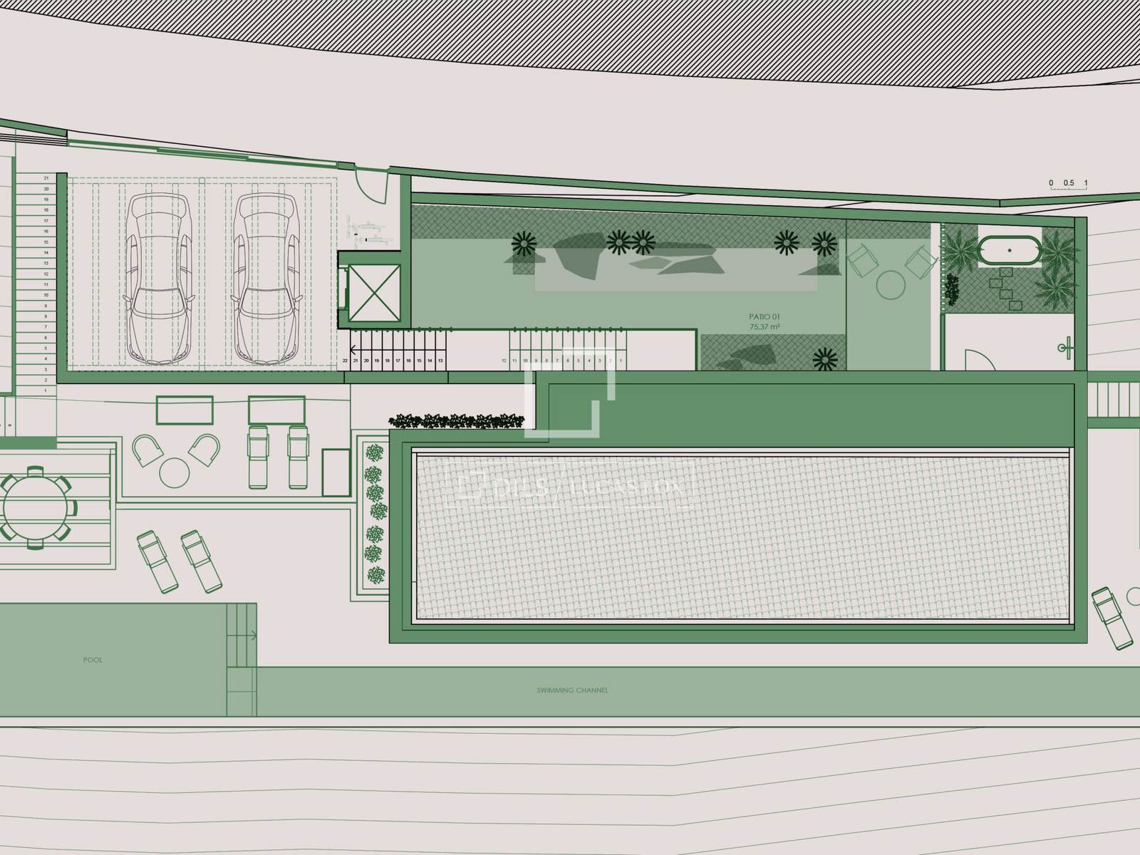 Deze woning is ontworpen voor modern wonen en beschikt over een slim thuissysteem, een aparte ruimte voor een volledig uitgeruste fitnessruimte, was- en bergruimtes en zorgvuldig geplaatste technische ruimtes, die functionaliteit combineren met ingetogen schoonheid. Hoewel rustig en privé gelegen, bevindt de residentie zich op slechts enkele minuten van de mooiste plekjes van Jávea: