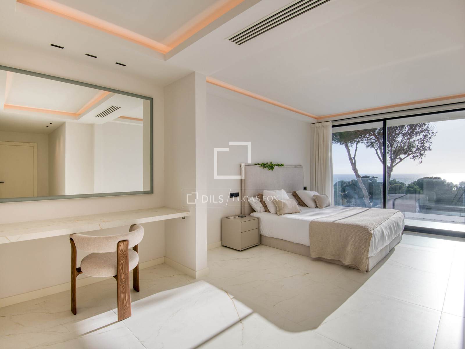 De bovenverdieping beschikt over vier tweepersoonsslaapkamers, waaronder een prachtige master suite met een grote inloopkast en een complete en-suite badkamer, een tweede tweepersoonsslaapkamer met eigen badkamer en twee extra tweepersoonsslaapkamers met een gedeelde badkamer. Alle slaapkamers bieden een open uitzicht op zee en toegang tot buitenruimtes.