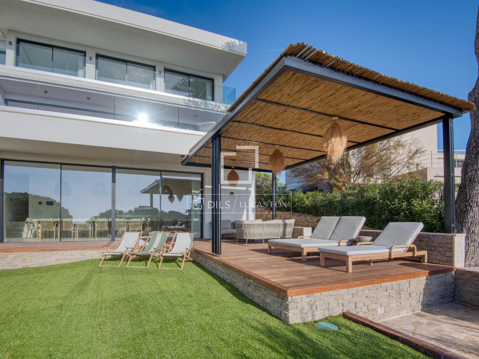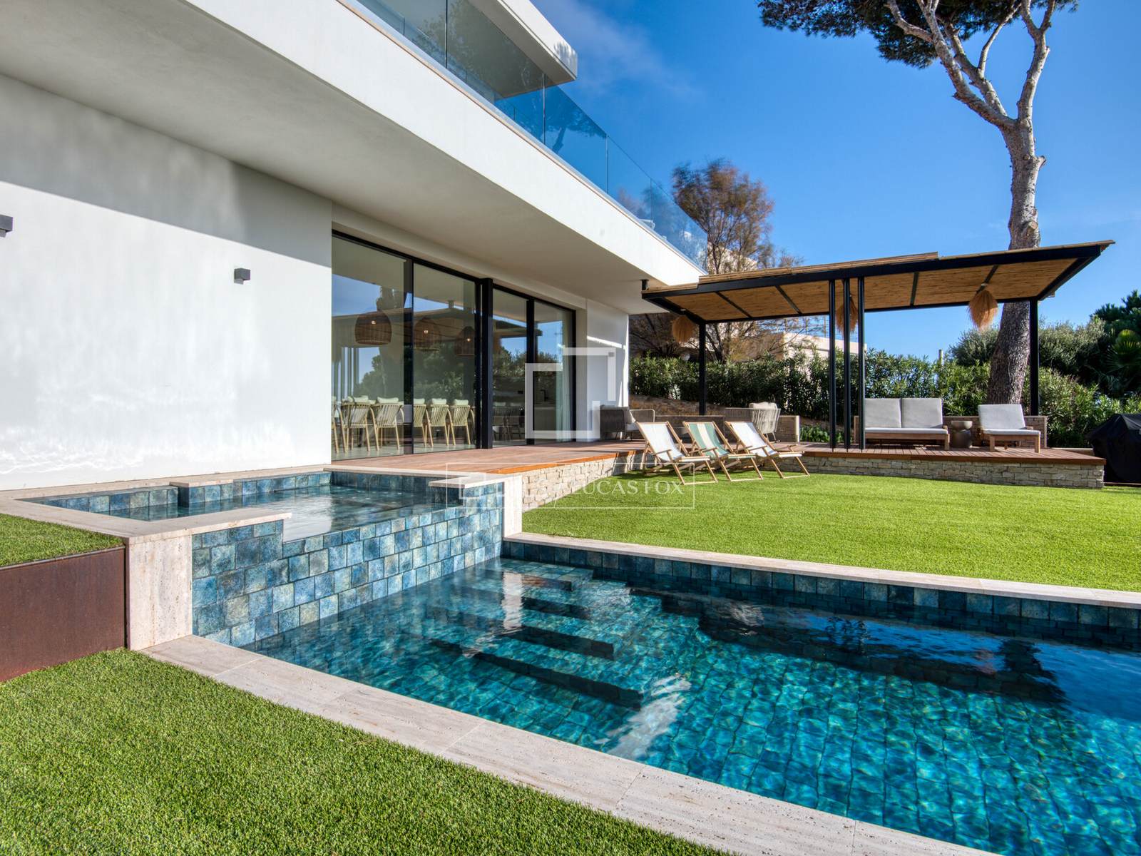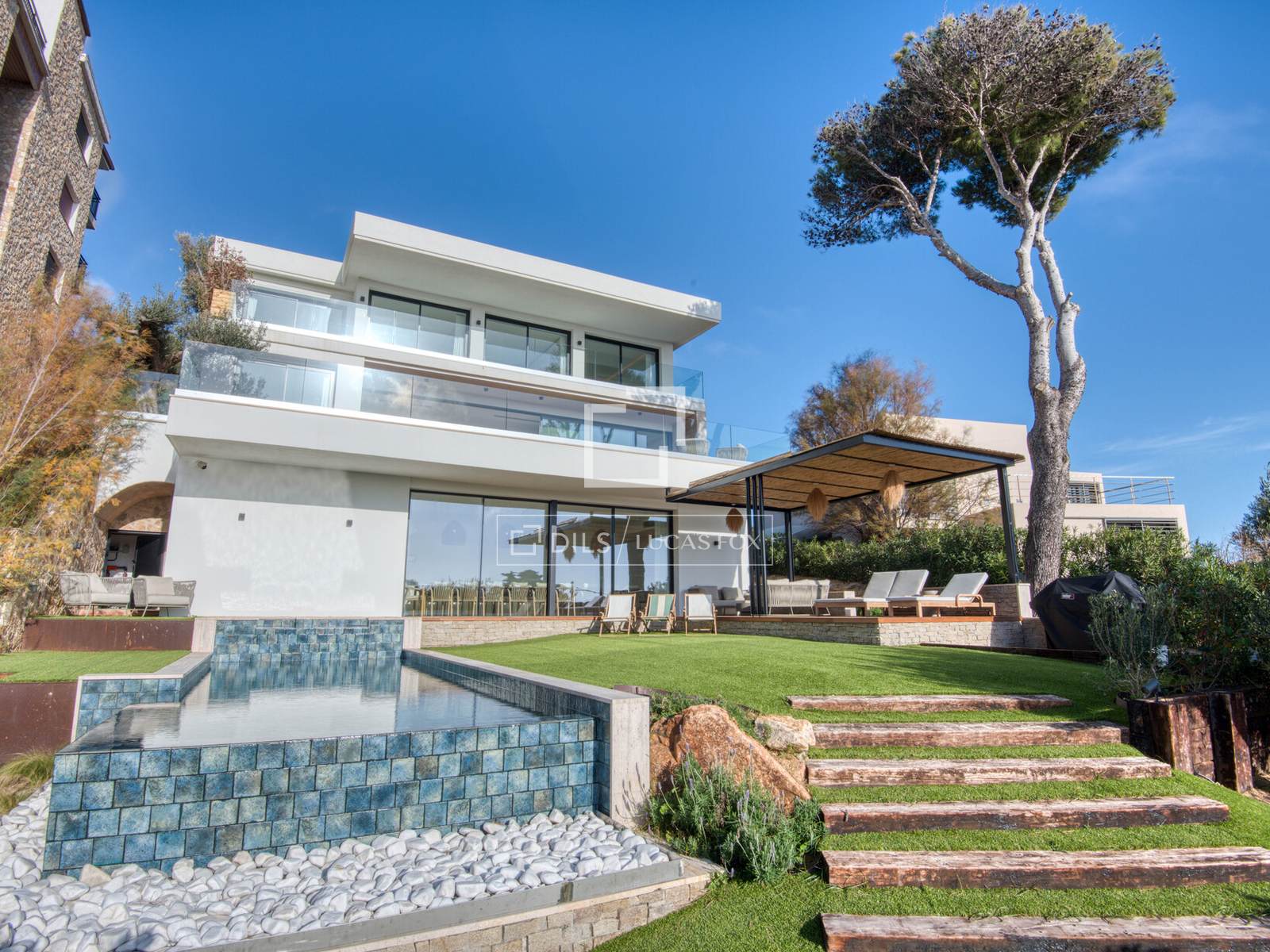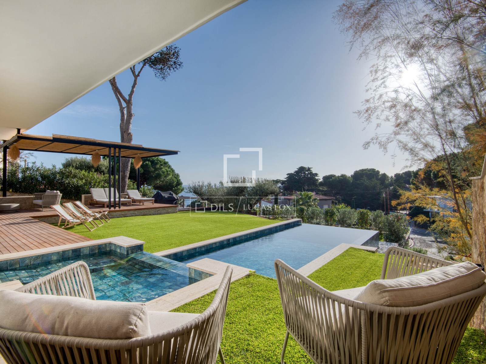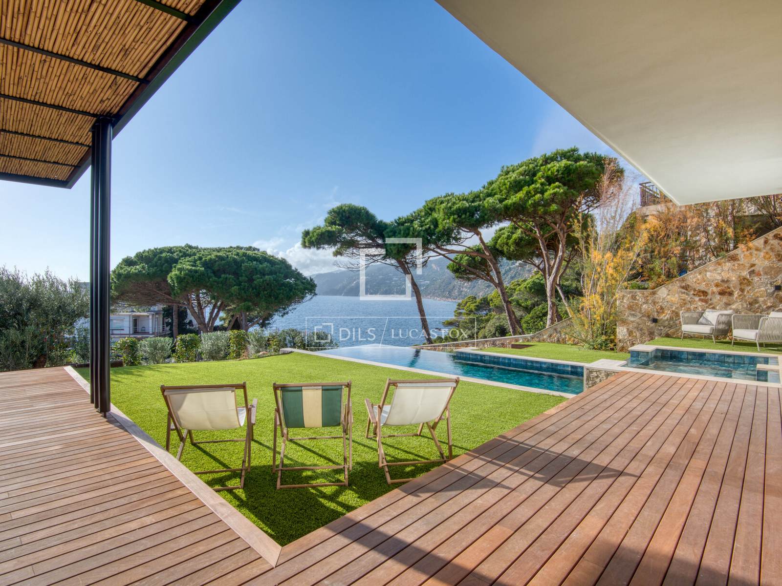 Schitterende, volledig gerenoveerde luxe villa met elegante architectuur, verfijnd interieur, uitzicht op zee, een privézwembad en aangelegde tuinen, ideaal gelegen in Sant Elm, Sant Feliu de Guíxols, op korte loopafstand van het strand, aan de Costa Brava.