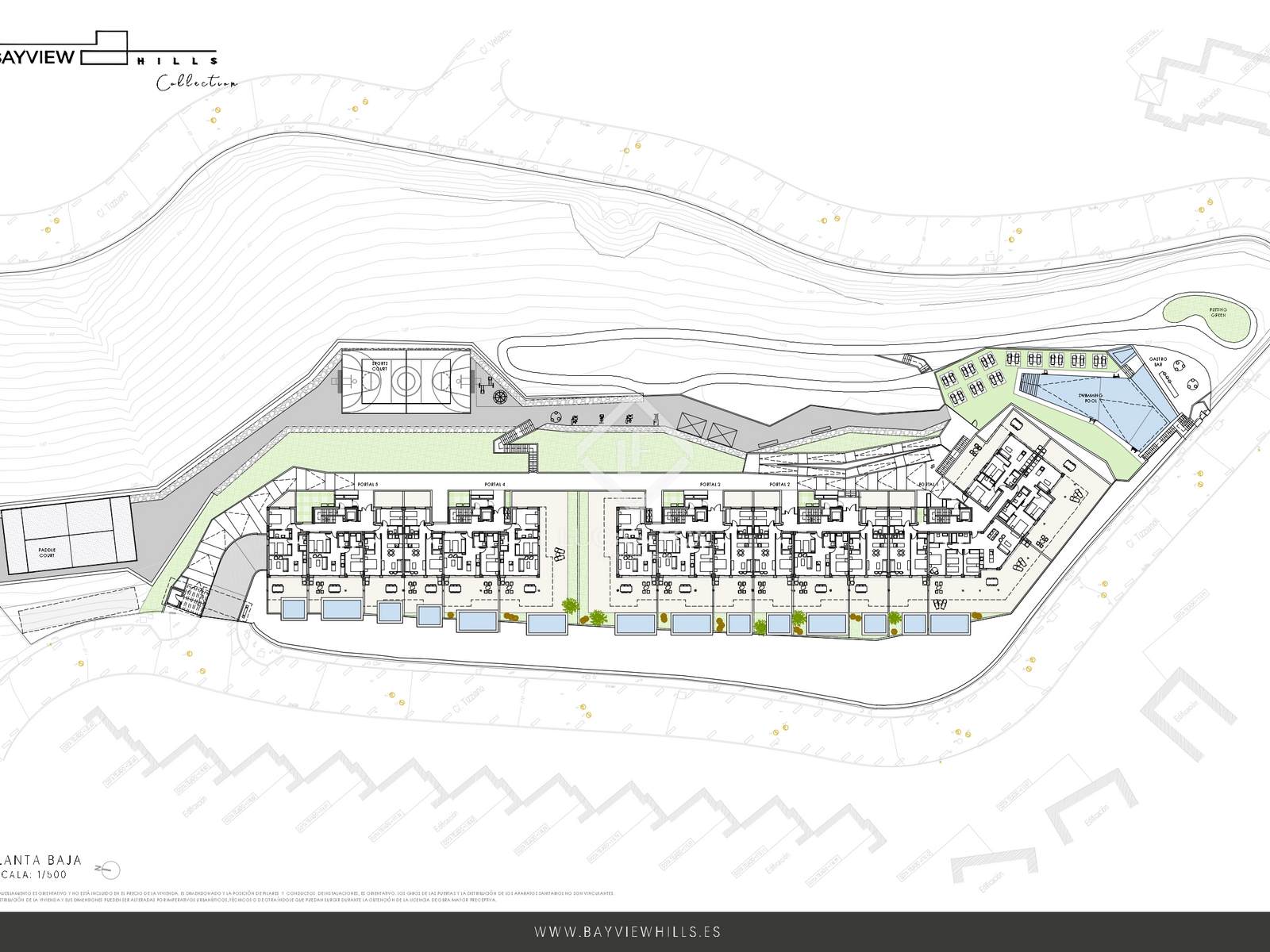 Hoewel de woningen en het uitzicht de eerste dingen zijn die uw aandacht trekken, heeft de ontwikkeling zoveel meer te bieden. Verspreid over het mediterrane landschap vinden we zwembaden, een fitnessruimte, een sociale ruimte met een barbecue, een spelletjes- en een speelkamer. Het complex biedt ook een Finse sauna en Turks bad, jacuzzi, paddle-tennisbaan en multisportbaan, putting green, minigolf, bioscoopzaal, sociale club, barbecueruimte met uitzicht op zee en zelfs een wijnbar.