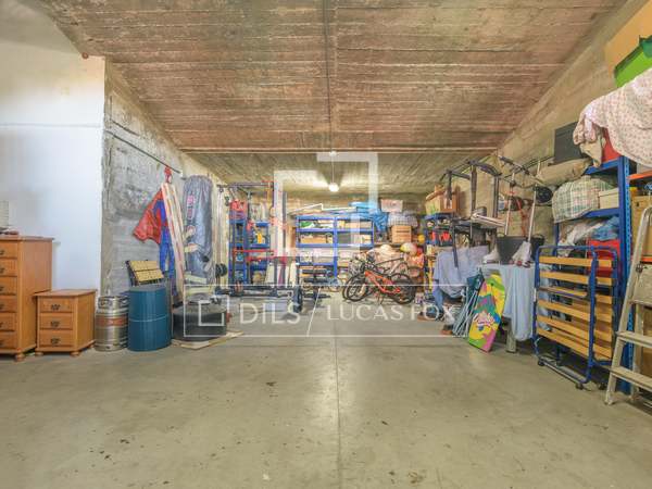 Op de benedenverdieping bevindt zich een grote garage met ruimte voor meerdere voertuigen en extra opbergruimte.