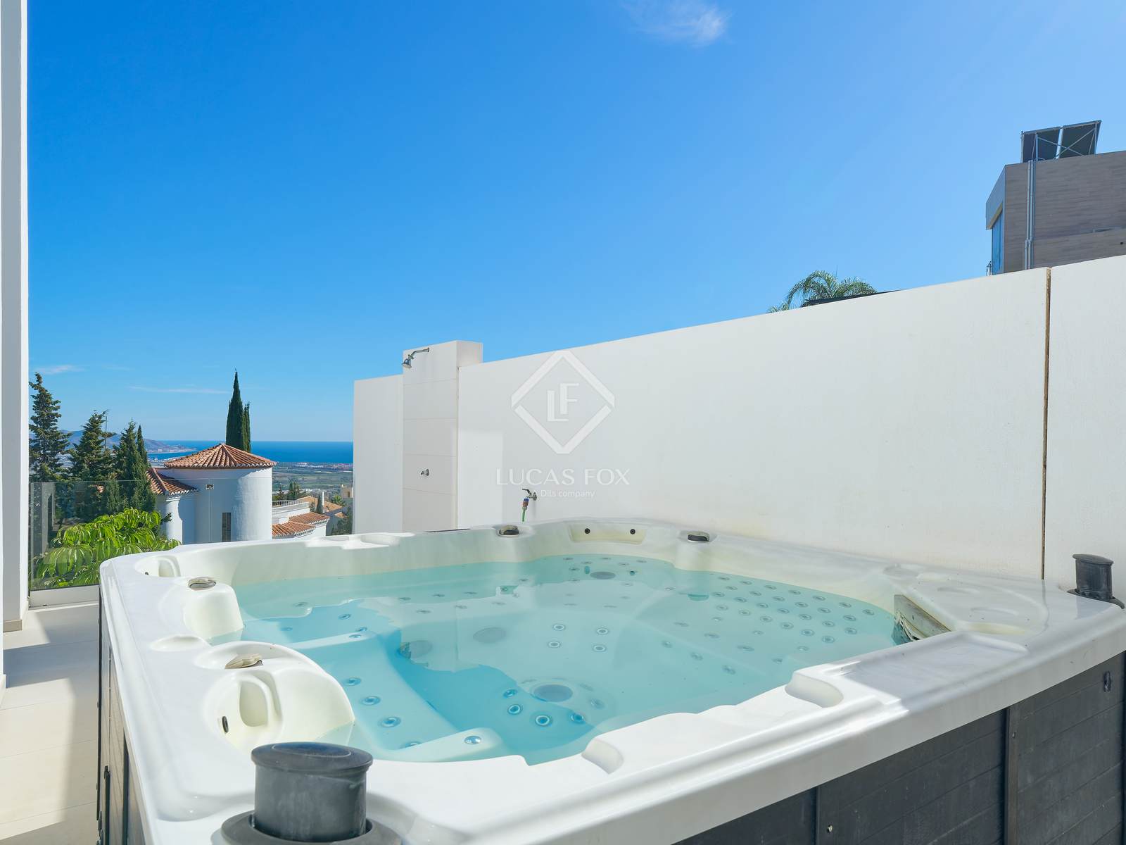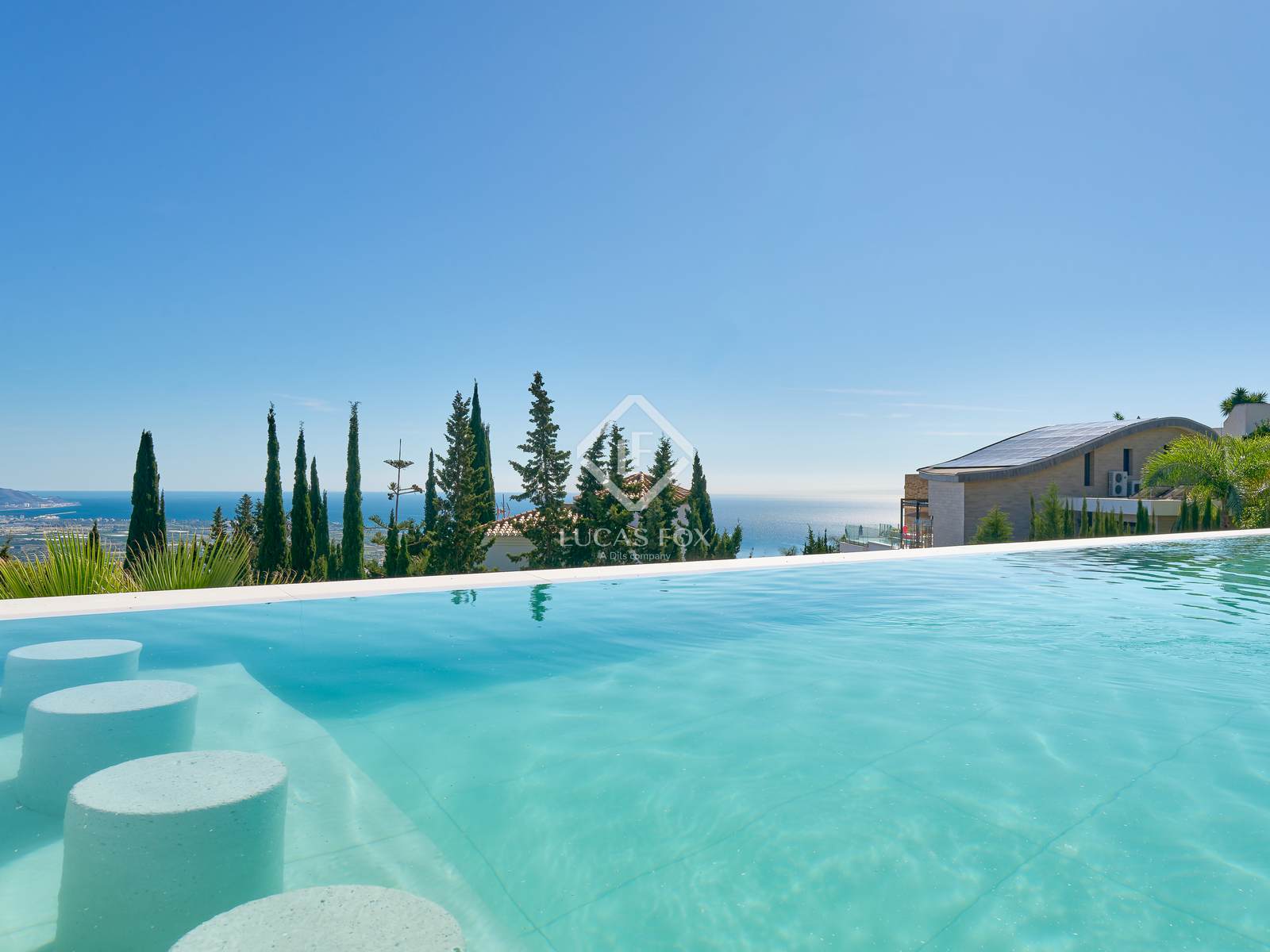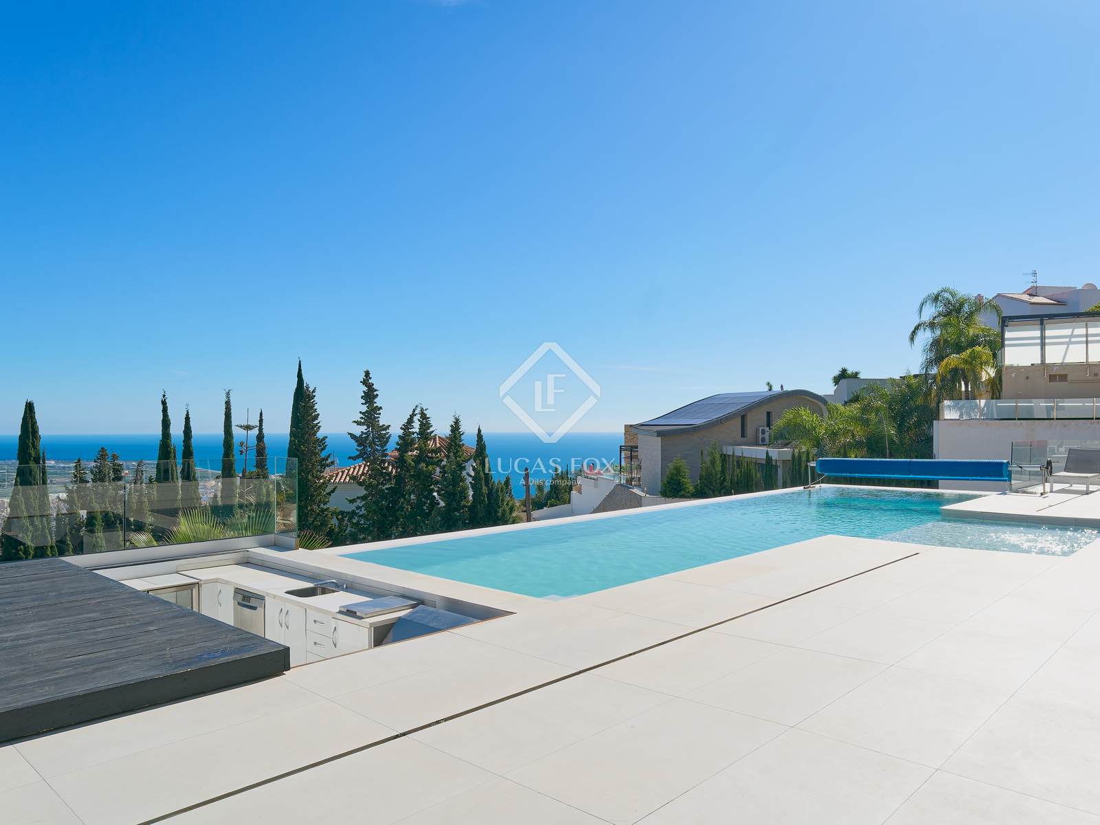 Buiten is er een groot terras met een spectaculair verwarmd infinity zwembad met een bar in het water, een volledig uitgeruste buitenkeuken en een chill-outruimte, ideaal om het hele jaar door te genieten van het klimaat en het uitzicht op de Middellandse Zee. Aan de ene kant is er een jacuzzi om te ontspannen, terwijl aan de achterkant een buitenspeelplaats is ontworpen voor familie-entertainment.