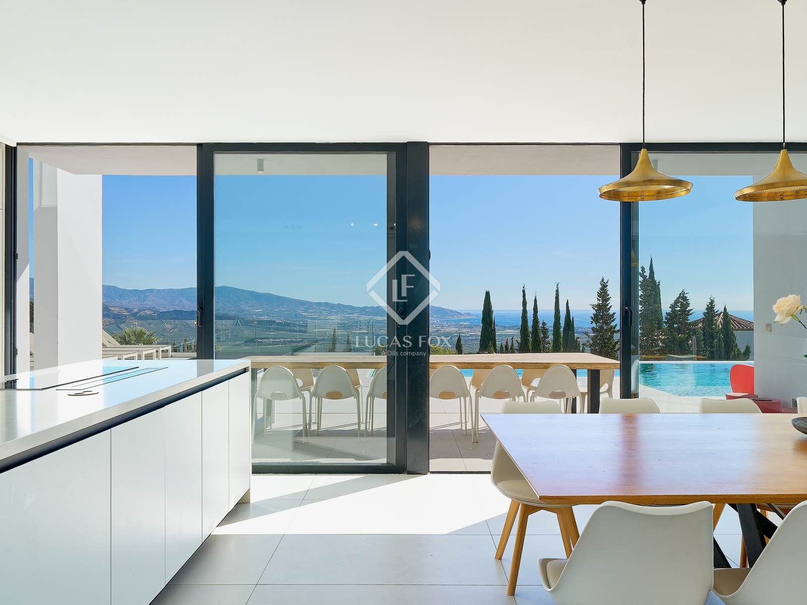 Lucas Fox presenteert deze spectaculaire moderne villa in de urbanisatie Monte de los Almendros, in een van de meest exclusieve gebieden van de Costa Tropical. De woning biedt een ongeëvenaard uitzicht op zee, het Moorse kasteel van Salobreña en de omliggende bergen.