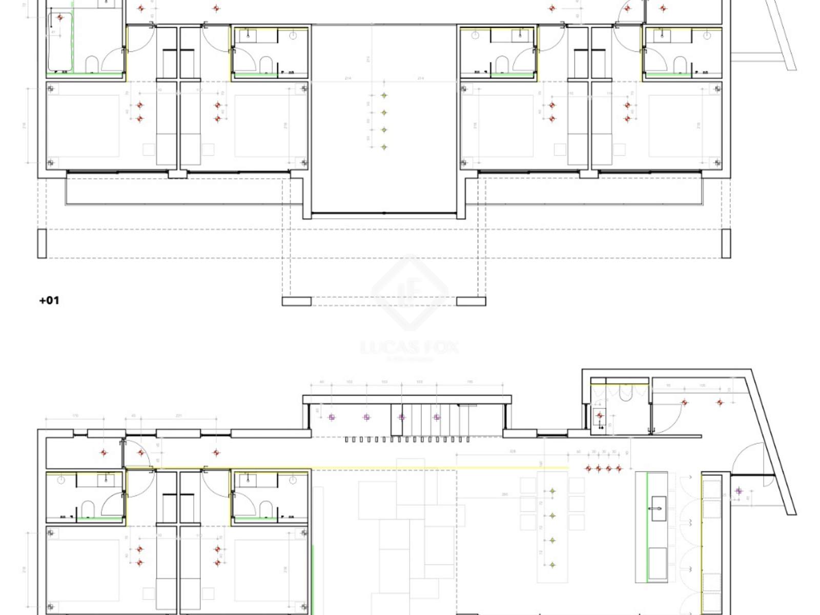 Op de bovenverdieping bevinden zich vier slaapkamers met eigen badkamers, grote ramen en een eigen terras. Elke kamer beschikt over inbouwkasten.