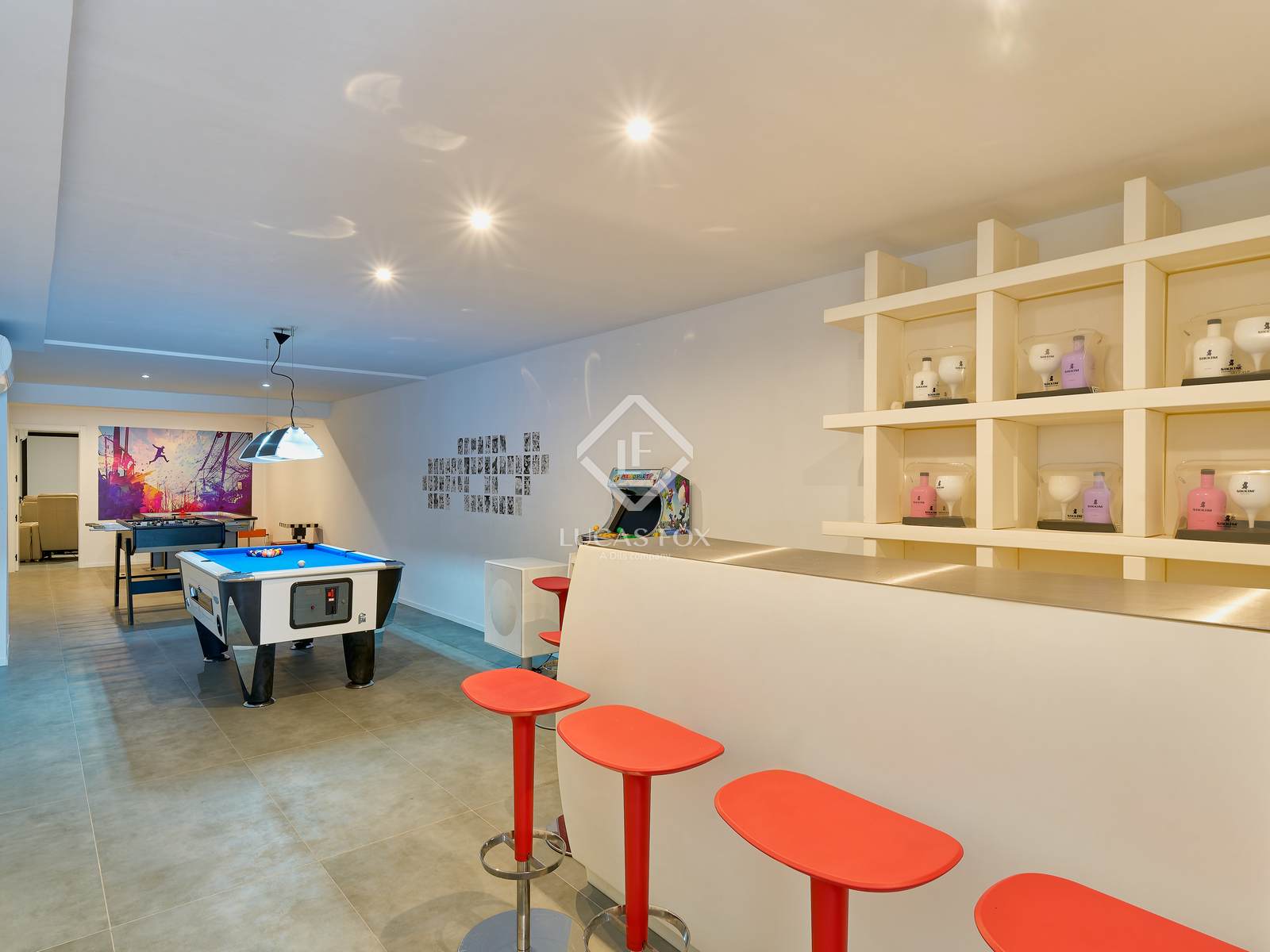 Boven de garage bevindt zich een stijlvolle, aparte recreatieruimte met een speelkamer, bioscoop en badkamer. Ideaal voor vrije tijd of als extra ruimte voor gasten.