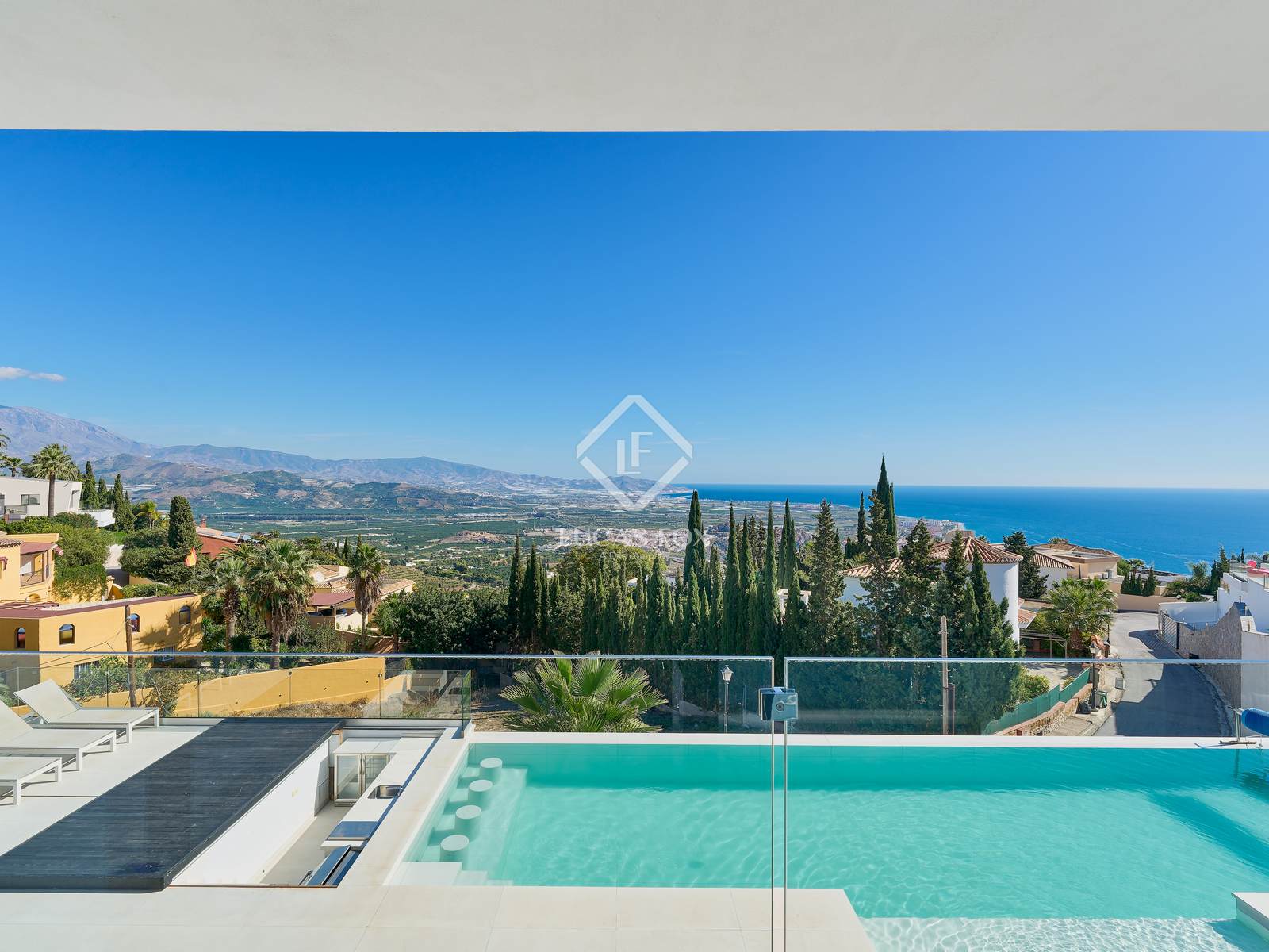 Lichte villa met moderne architectuur en een van de mooiste uitzichten over Salobreña te koop in een rustig gedeelte van de tropische kust van Granada.