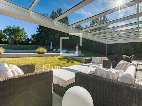 Prachtig huis met vrij uitzicht, met een privétuin van ruim 400 m² te koop op vijf minuten van de hoofdstad, in een urbanisatie met 24-uurs beveiliging in Valdemarín, Madrid.