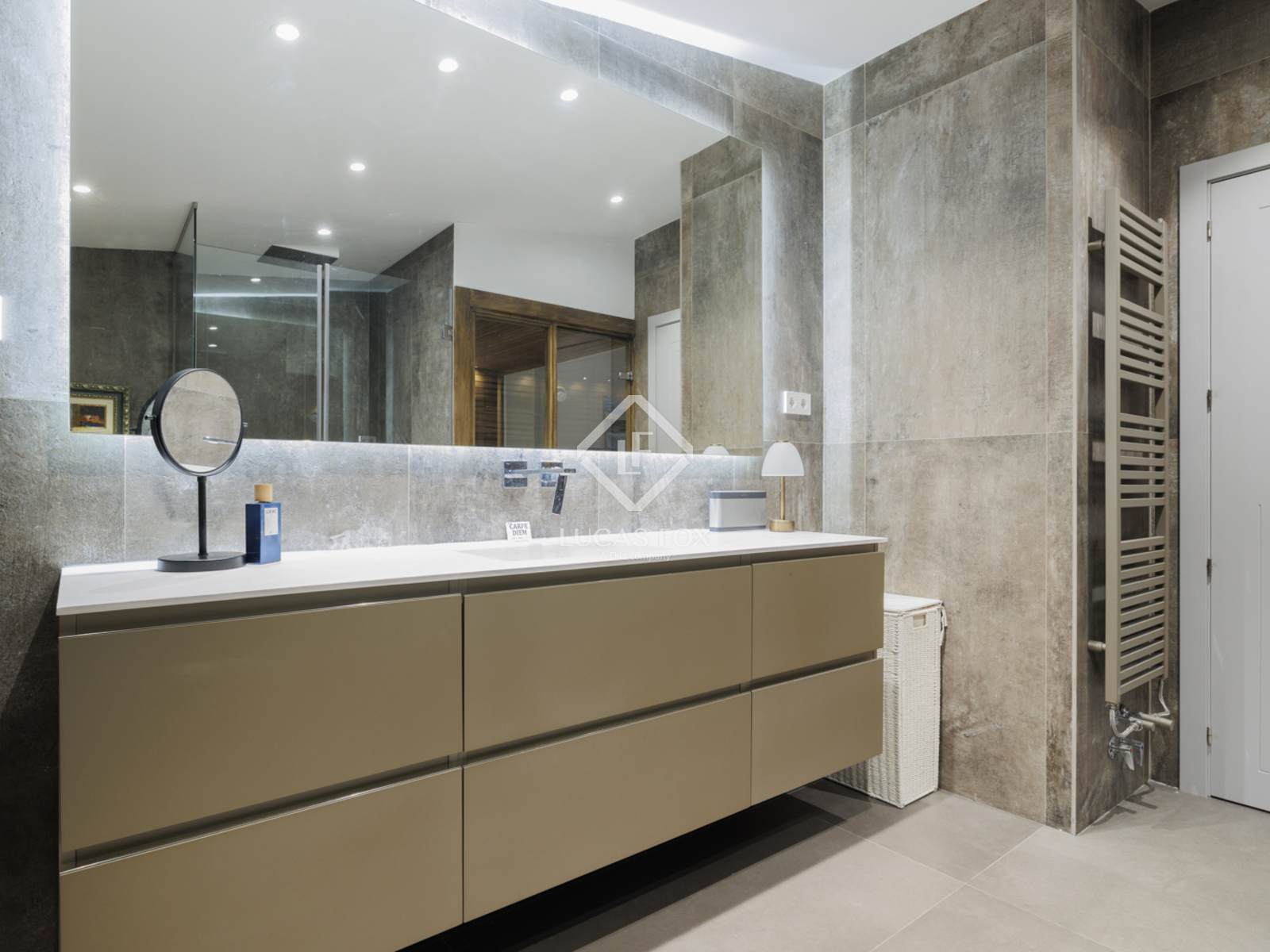 We bereiken het appartement via de lift, via de elegante hal of direct vanuit de garage.