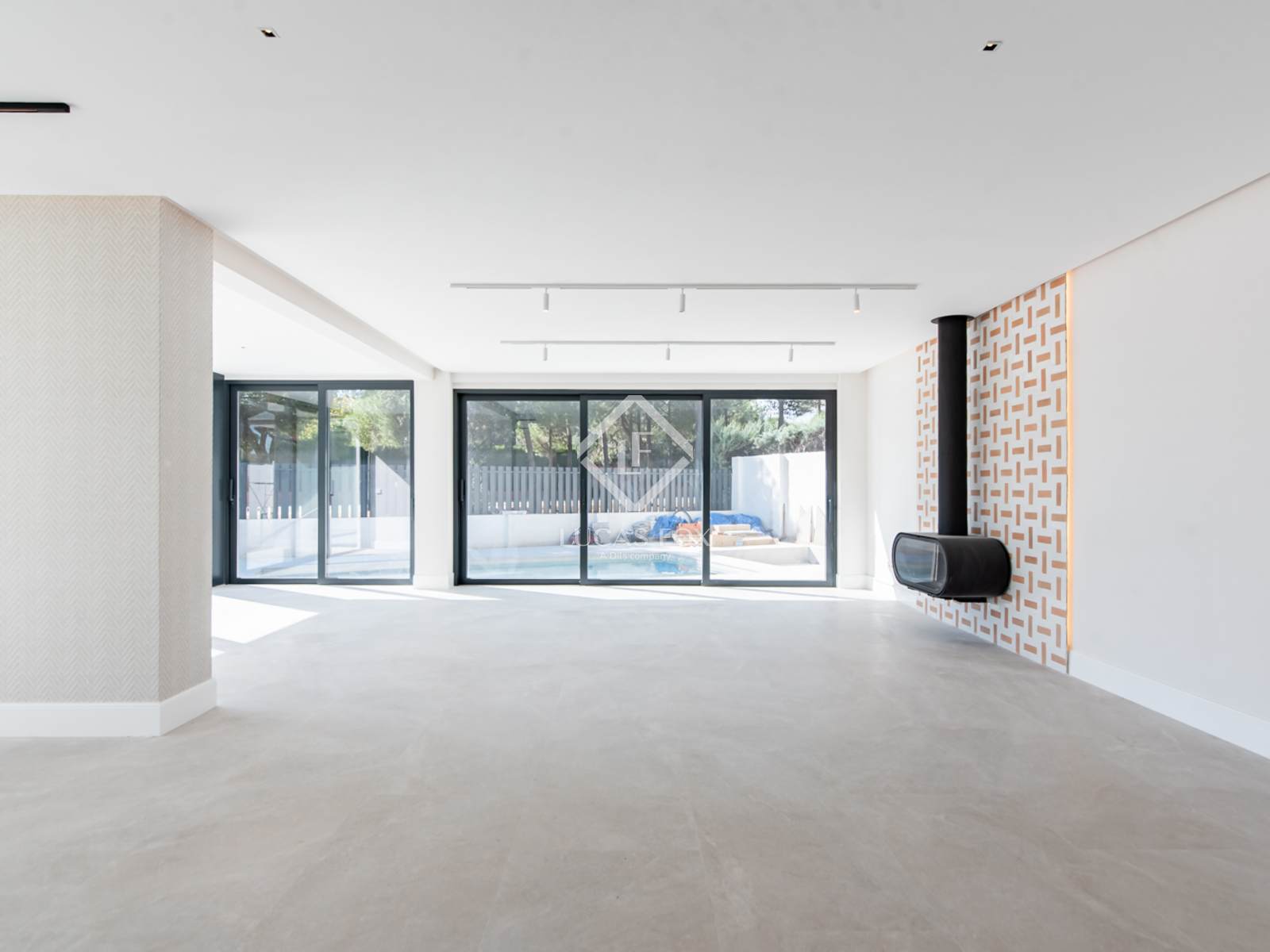 Prachtige moderne designvilla, volledig gerenoveerd met luxe kwaliteiten op een privé hoekperceel te koop in de beste wijk van Valdecabañas, Boadilla del Monte.