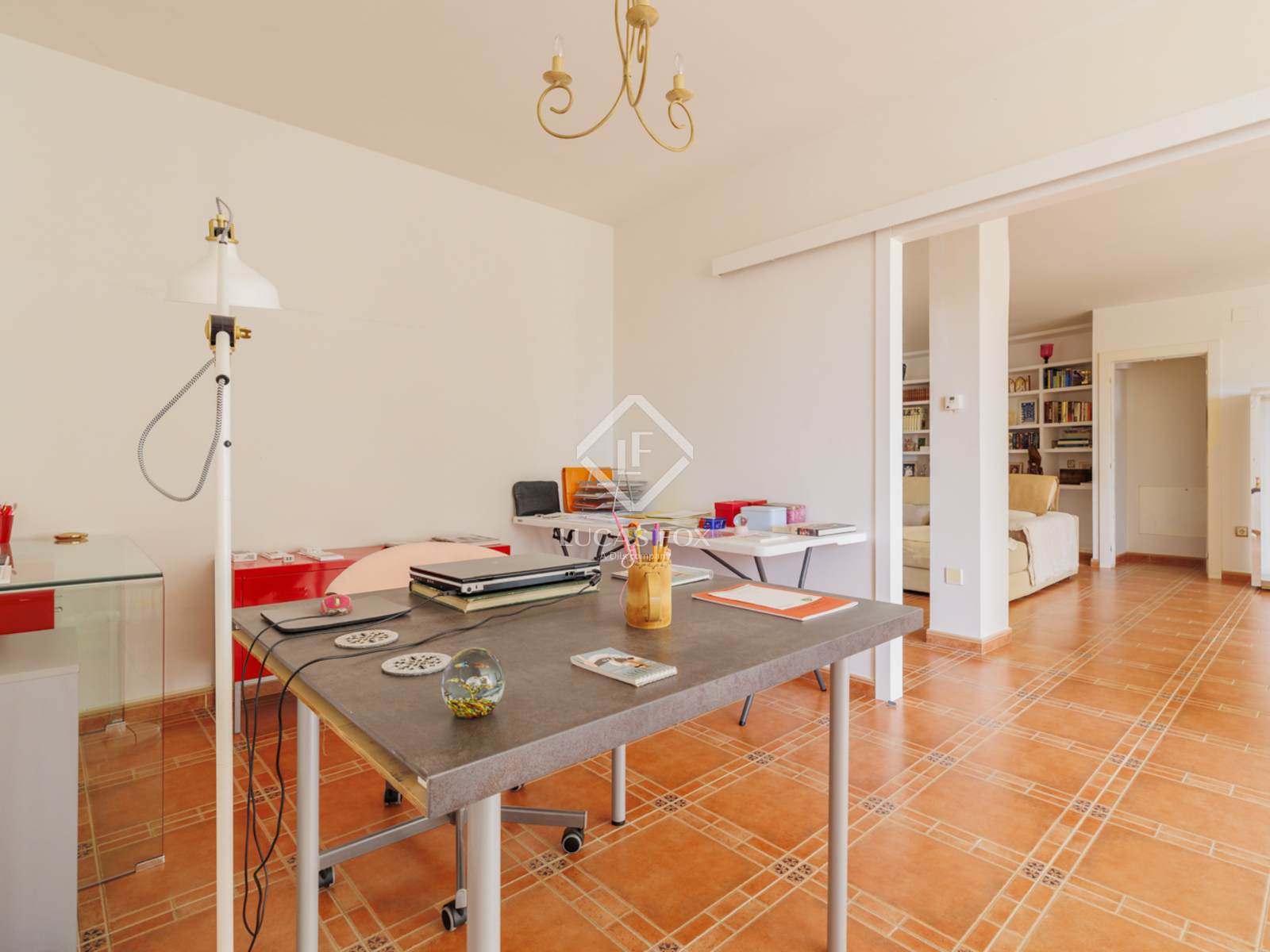 Op de semi-kelderverdieping vinden we een grote woonkamer, ideaal voor de zomer, omdat deze directe toegang heeft tot de veranda en de keuken, plus een kantoorruimte en twee slaapkamers met een complete badkamer.