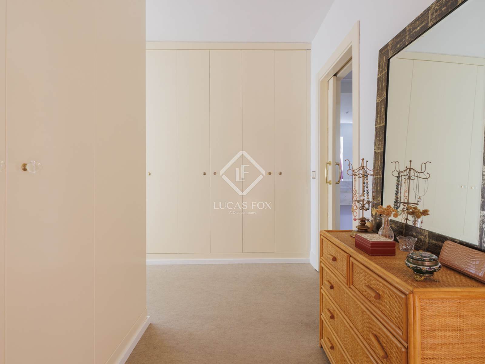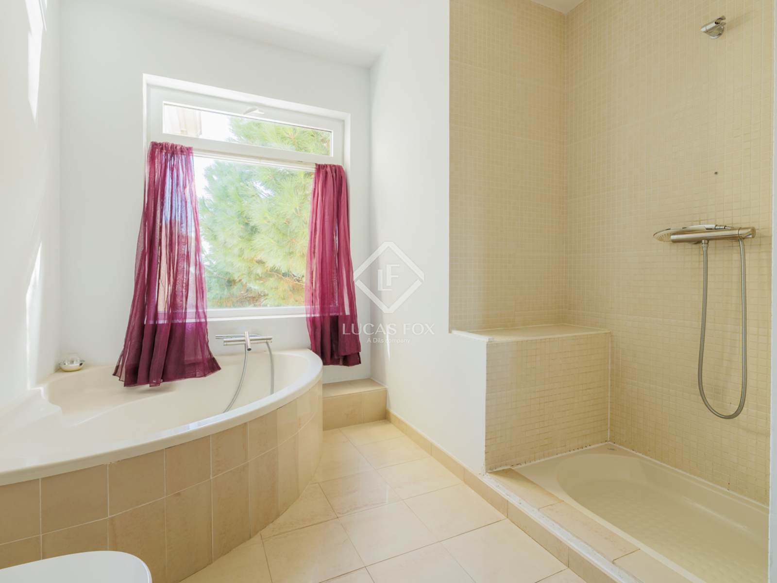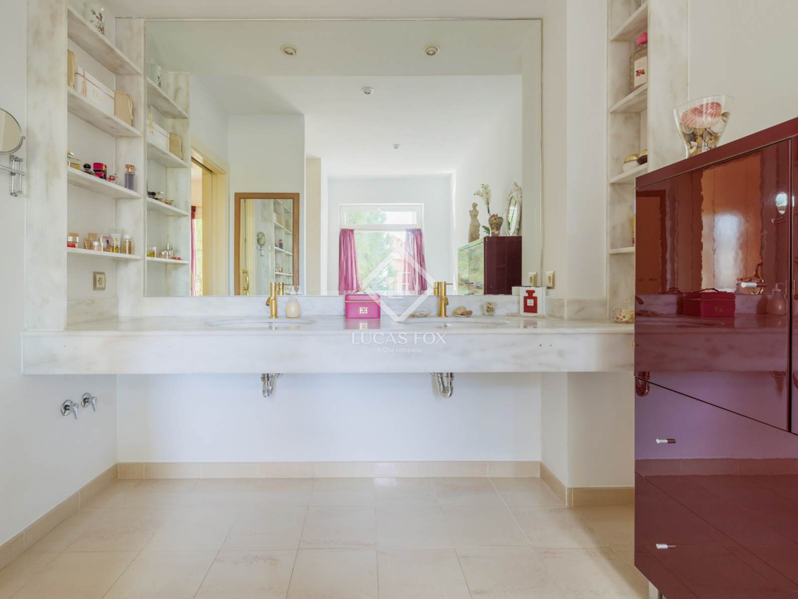 We bereiken de eerste verdieping via een lichte trap die leidt naar een ruime overloop met een groot raam dat de kamer overspoelt met natuurlijk licht. Op deze verdieping vinden we het slaapgedeelte met twee ruime slaapkamers, elk met een eigen badkamer. De hoofdslaapkamer beschikt over een ruime en comfortabele kleedkamer, een grote en-suite badkamer en toegang tot een groot terras met uitzicht op de prachtige en uitnodigende tuin.