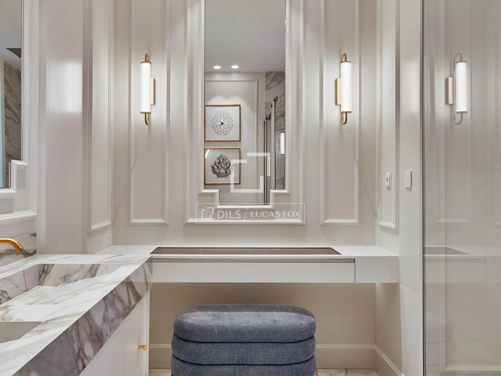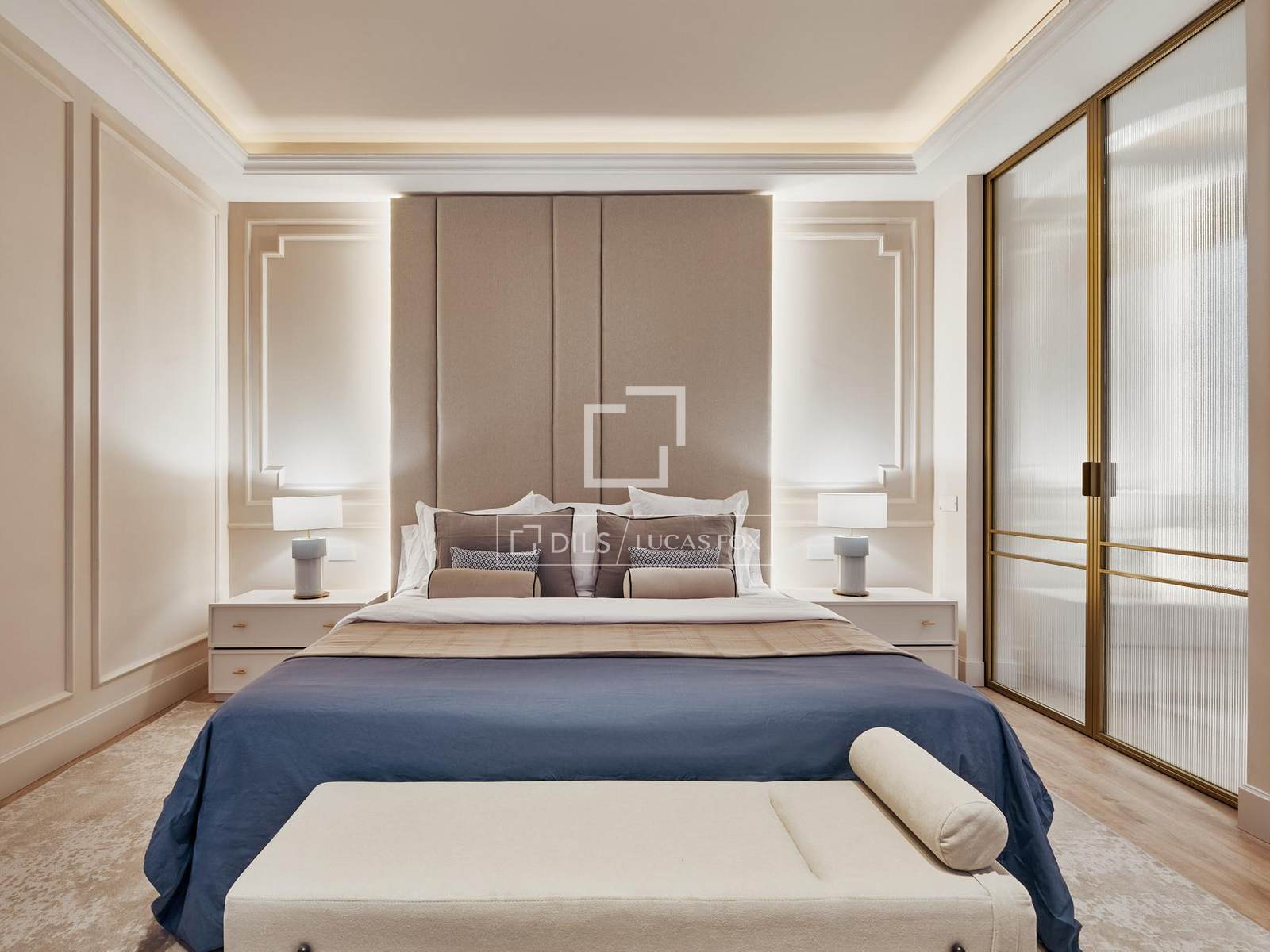 Het slaapgedeelte omvat vier slaapkamers, waarvan sommige met een kleedkamer, evenals vijf complete badkamers en een gastentoilet. Daarnaast beschikt de woning over een aparte kantoorruimte, ideaal om in alle privacy vanuit huis te werken.
