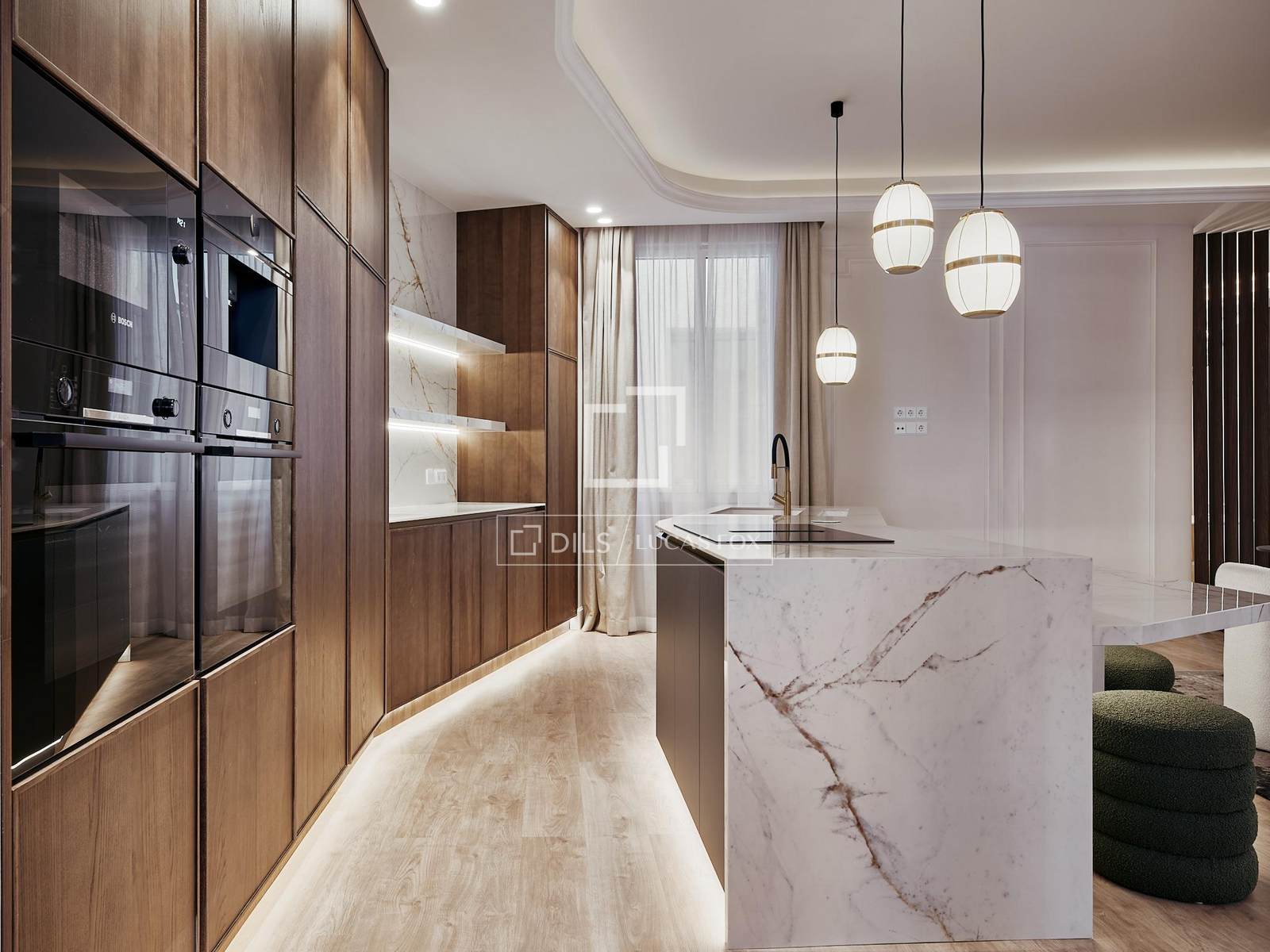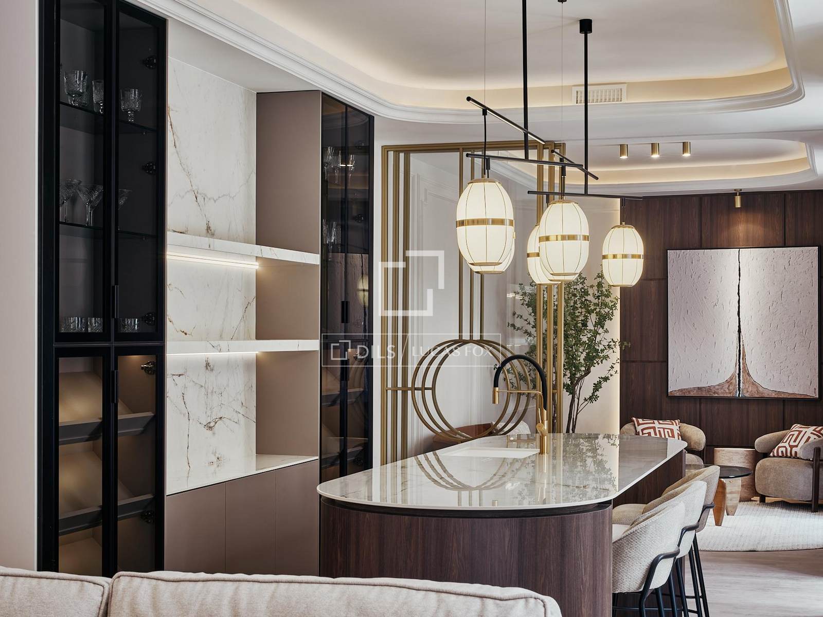 Het appartement bevindt zich op de tweede verdieping en heeft een oppervlakte van circa 361 m². De woning biedt twee ruime en aparte woonkamers, een grote en een kleinere, meer intieme ruimte, evenals een elegante loungebar die is ontworpen als een plek voor bijeenkomsten en ontspanning.