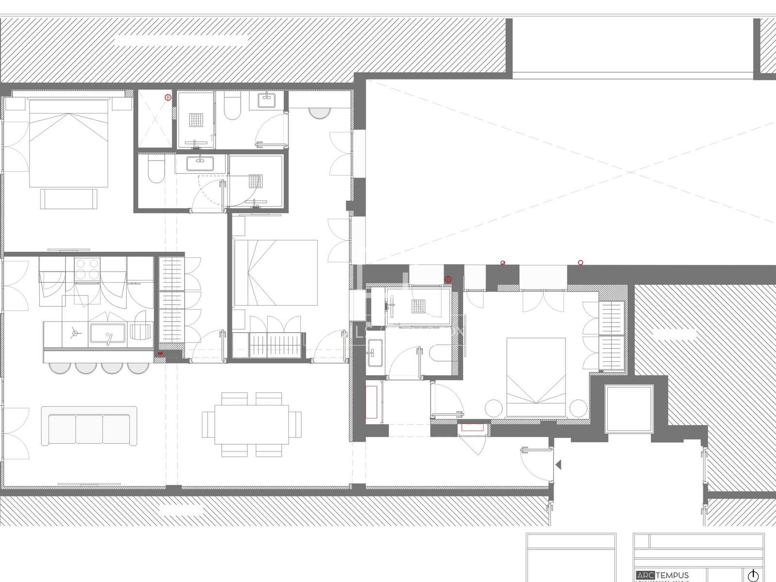 Het appartement bevindt zich op de eerste verdieping (tweede verdieping in de VS/VK) van een gebouw met lift, wat zorgt voor veel natuurlijk licht en comfort. Het biedt 134 vierkante meter woonruimte en is zorgvuldig ontworpen om ruime en functionele kamers te creëren. Het beschikt over drie slaapkamers, drie complete badkamers en een kleedkamer, ideaal voor maximaal comfort en opbergruimte.
