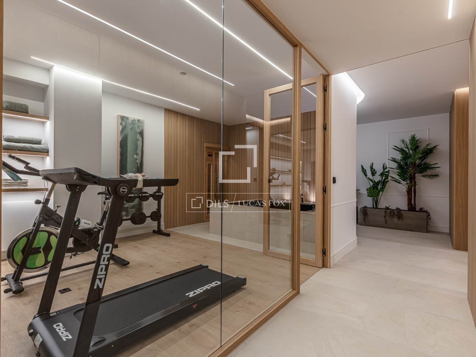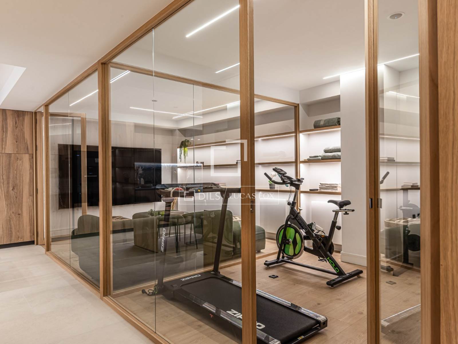 Een opvallend kenmerk van de woning is de privé-fitnessruimte en spa, evenals een exclusieve bioscoopkamer. Dit creëert een authentieke ruimte voor welzijn en ontspanning, zonder dat u de deur uit hoeft.